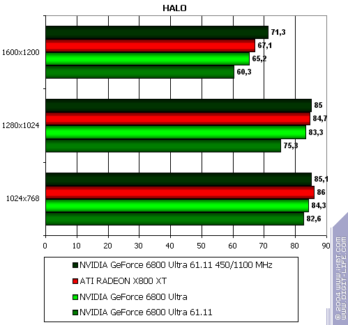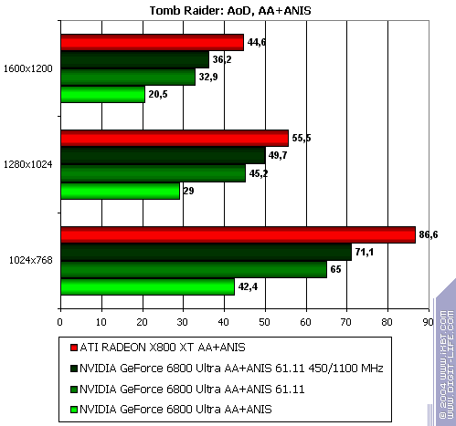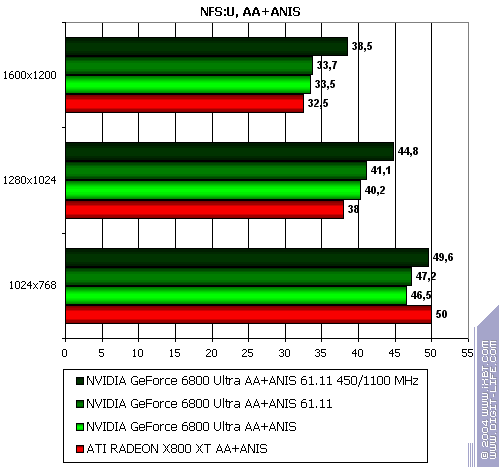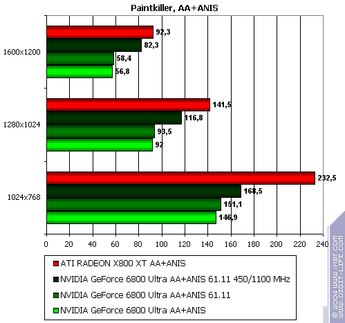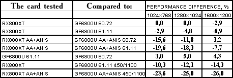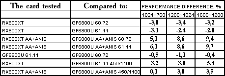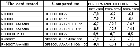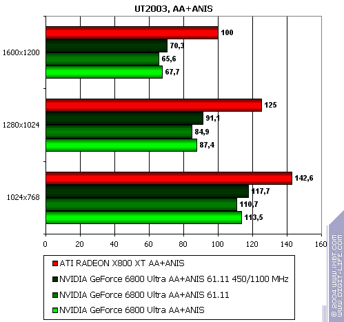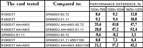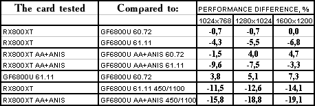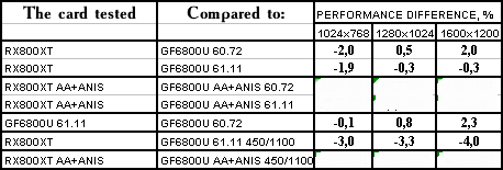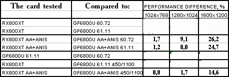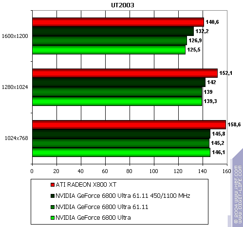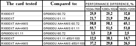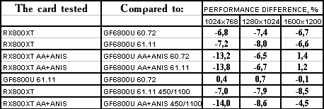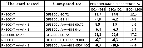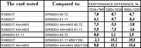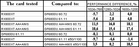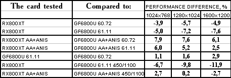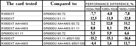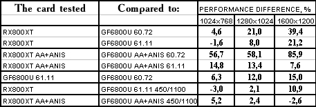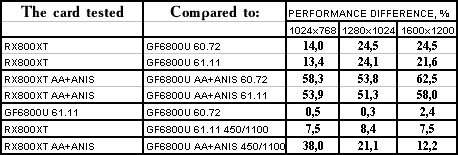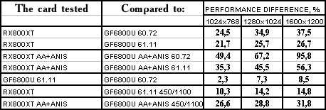- NVIDIA GeForce 6800 Ultra 450МГц против ATI RADEON X800 XT легкая победа, но все же примерный паритет