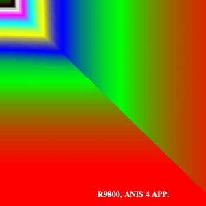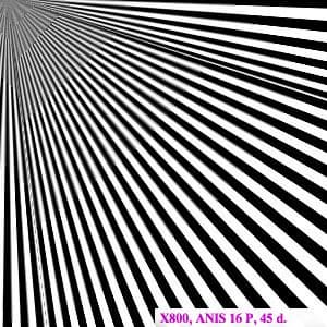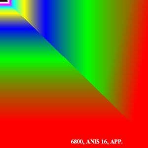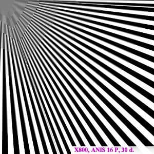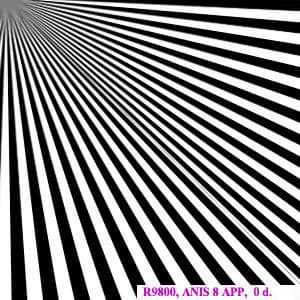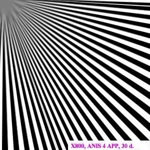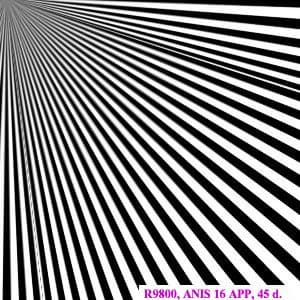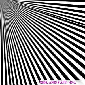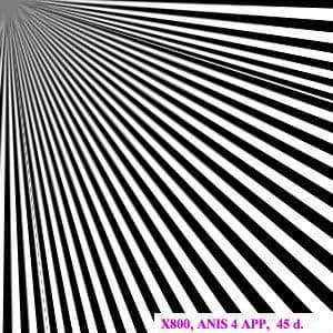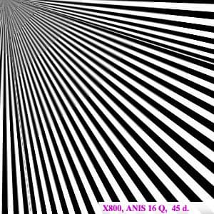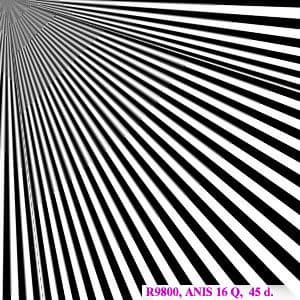 У NVIDIA начался небольшой алиасинг, но он характерен лишь для таких каверзных текстур, а в реальных приложений скорее добавит четкости чем навредит. Как бы там нибыло — это вопрос тонкого определения степени LOD при которой анизотропия дает максимум четкости, еще не срываясь в «песок». Т.е. вопрос о вкусе и цвете фломастеров, который мы как уже отмечалось ранее, оставили на откуп читателю.