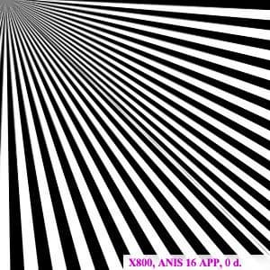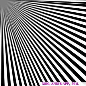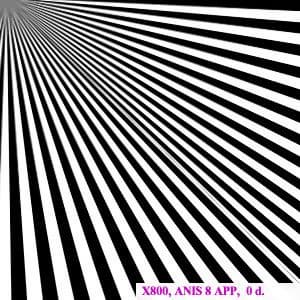 Как интересно, NVIDIA хорошо показывает себя на 30 градусах (и, кстати, других не кратных 45 градусам направлениях) а ATI предпочитает кратные величины. Причем с 30 и 45 градусами у X800 немного хуже чем у 9800. Смотрим дальше, 8х APP, 0 градусов: