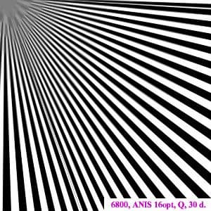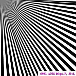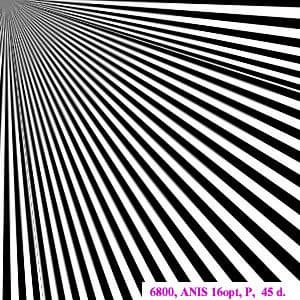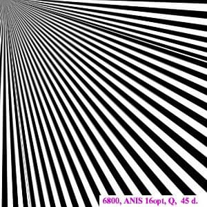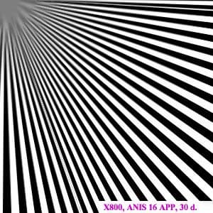Во-вторых отметим, что качество 16х достаточно даже для очень сложных случаев, таких, как наша зебровидная текстура, и дальнейшее увеличение степени анизотропии не видится нам первостепенной задачей. В будущих продуктах и драйверах лучше подтянуть ее качество в режимах с оптимизацией и, разумеется, в первую очередь увеличить ширину «честной» трилинейной зоны. Досадно, что у ATI не отключается оптимизация трилинейной фильтрации.