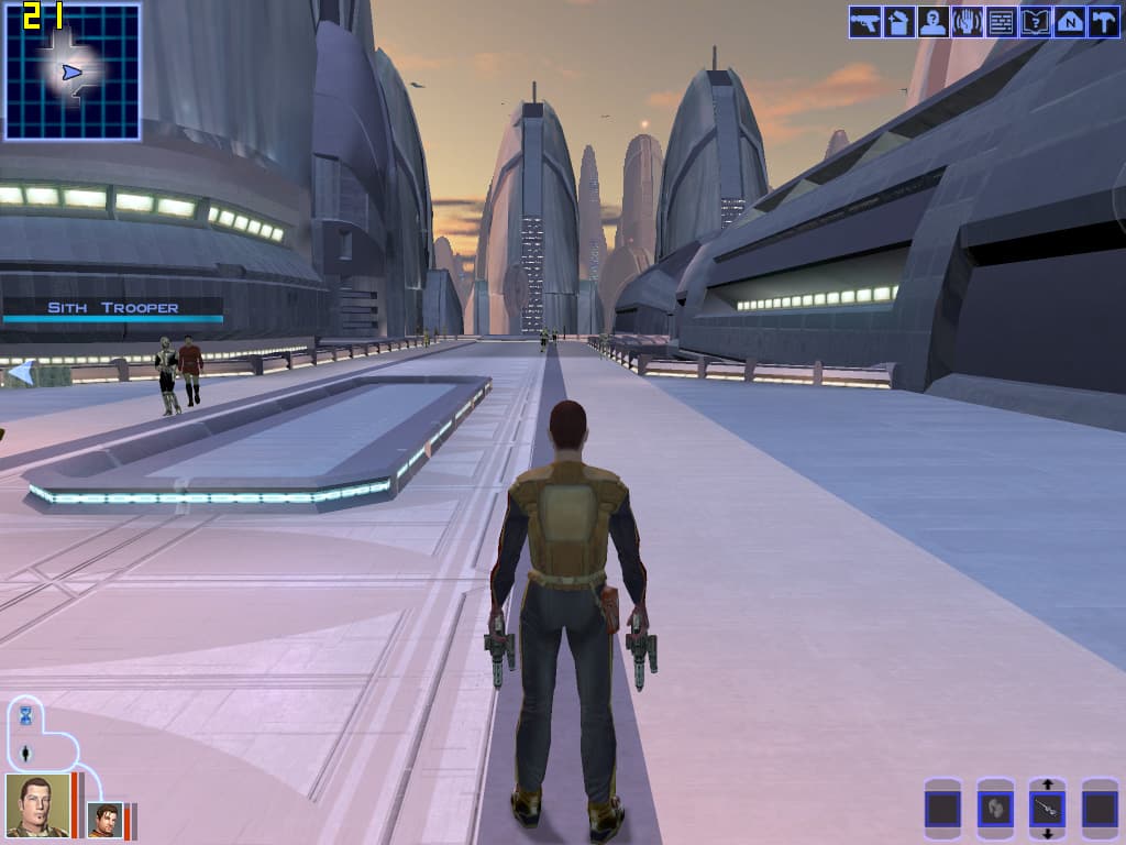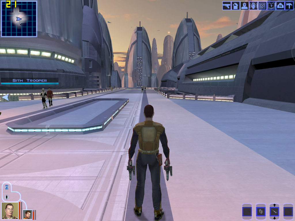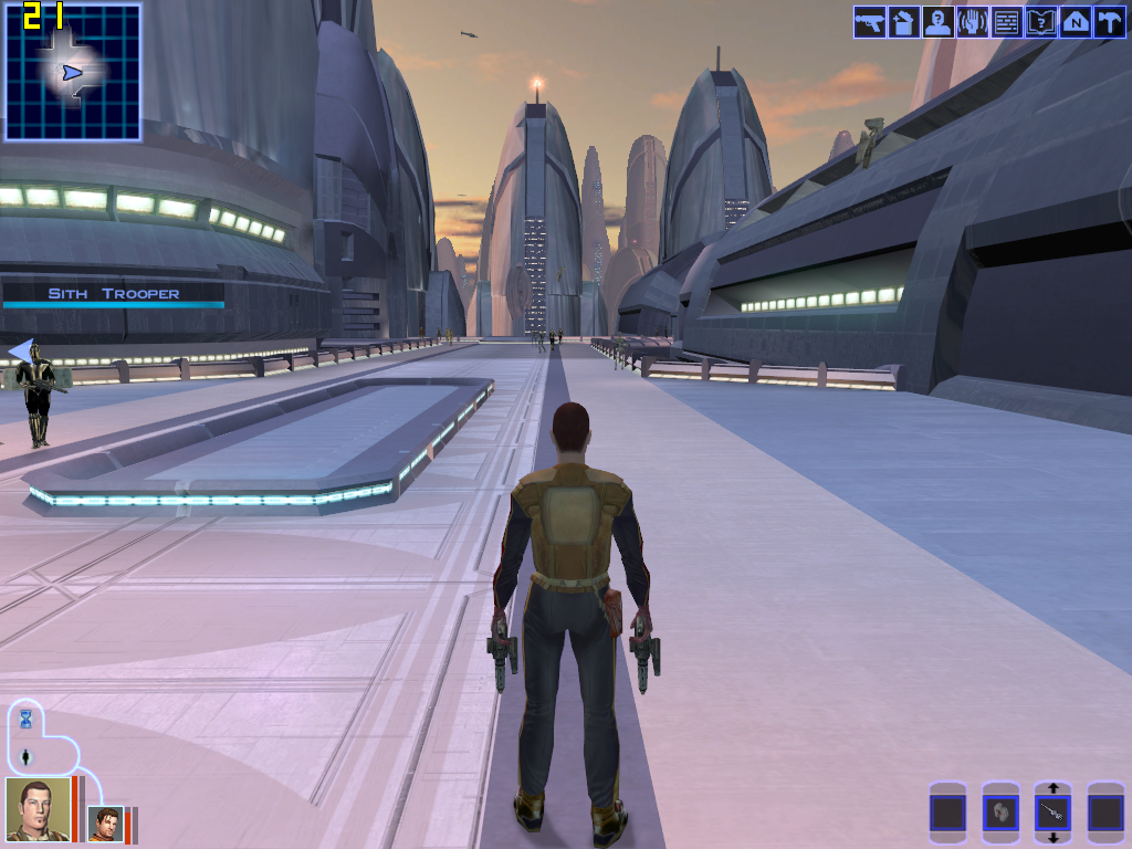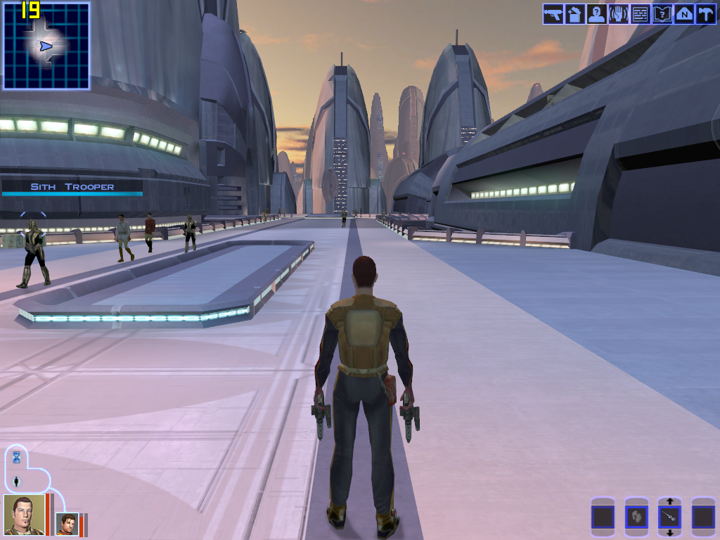 Последней игрой в сегодняшнем тестировании стала вышедшая на ПК полгода назад приставочная RPG Star Wars Knights of the Old Republic. Игра использует OpenGL и обладает собственными настройками анизотропной фильтрации, позволяющими выставить любой из поддерживаемых видеочипом уровней анизотропии. Возможность отключения мип-фильтрации (т.е., включения билинейной фильтрации текстур) отсутствует, игра всегда пытается использовать трилинейную фильтрацию, если она поддерживается видеочипом.