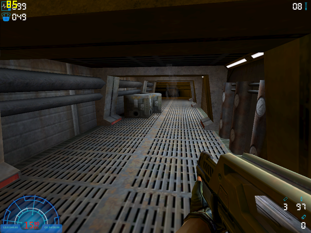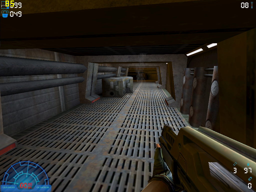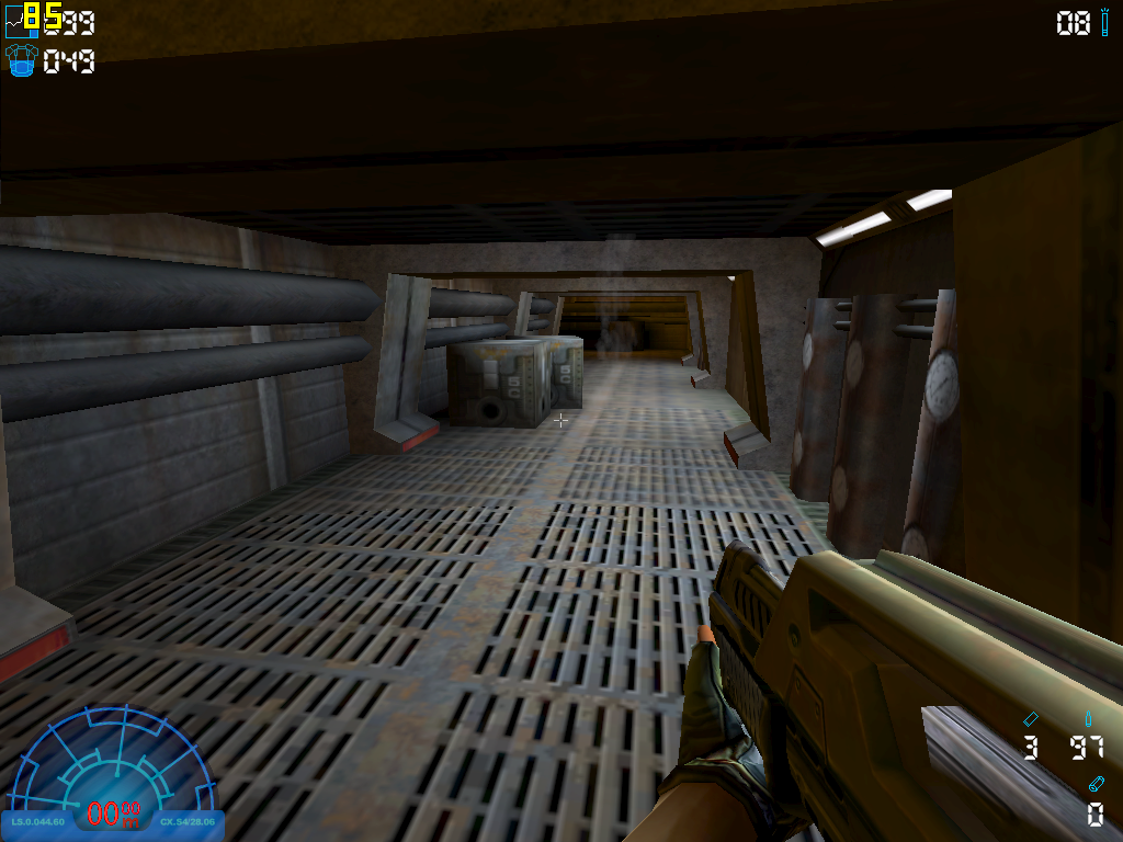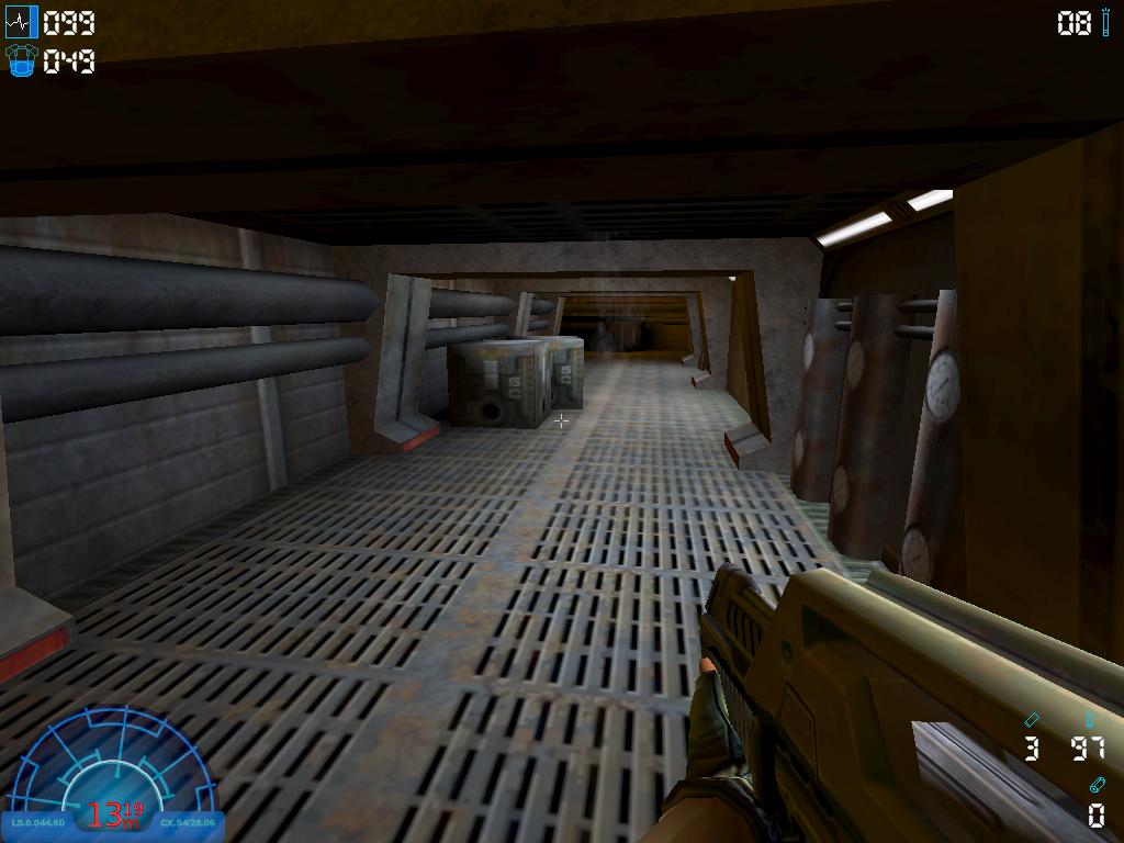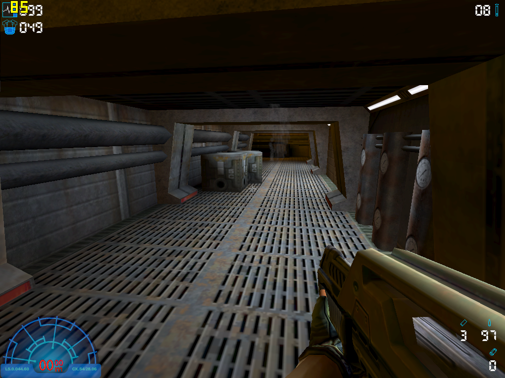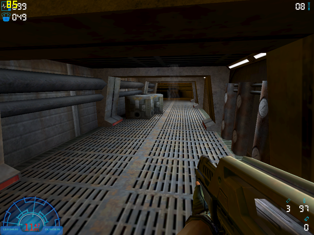 От «старичков» к относительно молодым: FPS Chaser вышел около года назад, и по одной лишь этой причине обладает существенно более детализированными текстурами. Кроме того, в Chaser постоянно встречаются длинные монотонно текстурированные плоскости, причем, не только лишь горизонтальные и вертикальные.