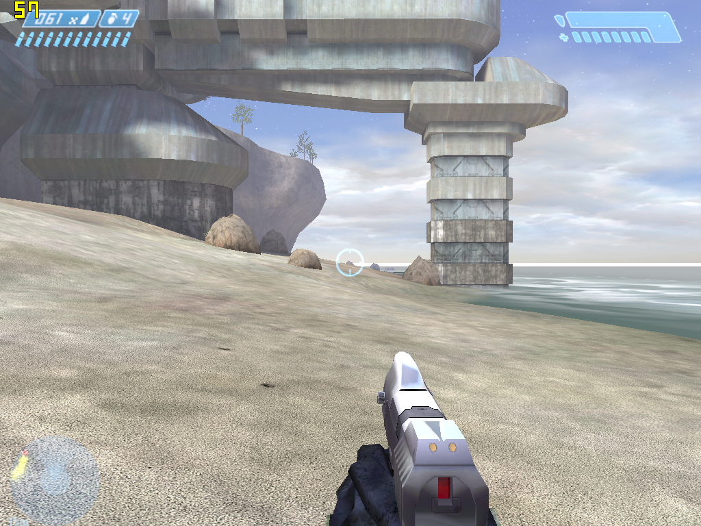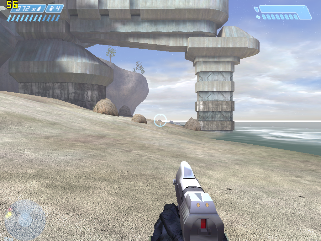 Хэдлайнер приставки Microsoft Xbox появился на ПК осенью прошлого года. Игра обладает достаточно странной графикой, сочетающей относительно простые приставочные текстуры с достаточно сложными спецэффектами, часть которых реализуется при помощи пиксельных шейдеров. Формально игра поддерживает все версии пиксельных шейдеров (кроме, разумеется, версии 3.0, поддержка которой в железе появилась лишь после выпуска GF6800), однако версии 1.4 и 2.0/2.0.a используются игрой лишь как суперсеты версии 1.3, поддерживаемой приставкой Xbox. По замыслу компании Gearbox, выполнявшей портирование игры на ПК, применение шейдеров более новых версий для отображения тех же спецэффектов должно было повысить скорость работы игры, однако на практике игра работает практически одинаково на всех версиях пиксельных шейдеров (форсирование той или иной версии можно задавать через параметры при запуске Halo из командной строки).