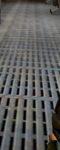 Есть и один интересный момент: обратите внимание на решетку, идущую вдоль пола по левой стороне коридора. На дальнем конце решетки видеокарты GF6800 и Radeon понизили уровень анизотропии — она расположена под неудобным для них углом. Но уровень анизотропии на этой многострадальной решетке снижен и на GFFX! Заточки в драйверах NVIDIA специально под Halo для карт FX-серии? Опять-таки, весьма вероятно, но прямых доказательств у нас нет.