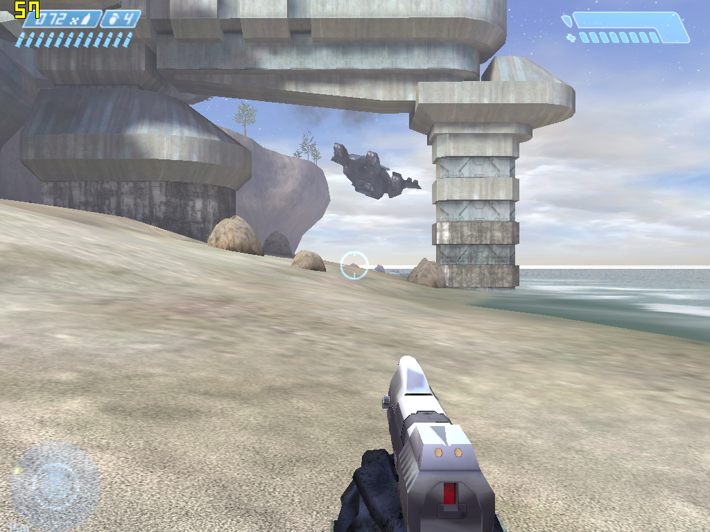 Поскольку в Halo нет полноценной функции сохранения, и точка обзора для первой сцены устанавливалась нами вручную, то попиксельного совпадения скриншотов не получилось. Для второй сцены мы использовали самое начало уровня Keyes, поэтому в ней все скриншоты сняты из полностью идентичных точек обзора.