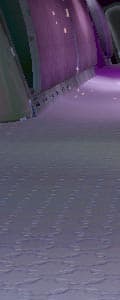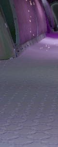 В идеальном случае границы мип-уровней в таком туннеле должны образовывать ровные, удаляющиеся от экрана круги. Кроме того, подобная сцена, содержащая все мыслимые углы наклона удаляющихся от экрана плоскостей, позволяет воочию убедиться в наличии проблемных для анизотропной фильтрации зон у Radeon и GeForce семейства 6800, а также полностью протестировать работу обновленных оптимизаций ForceWare 61.34+.