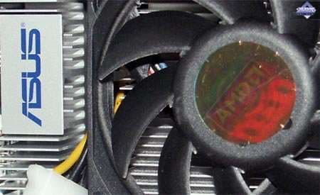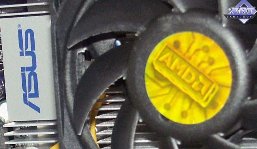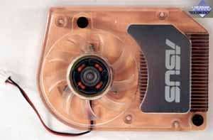 Кулер снова типа, как я называю, а-ля GeForce4, то есть закрытый радиатор со смещенным относительно центра вентилятором, который засасывает воздух и прогоняет его через решетку над графическим процессором. Основание радиатора — медное. Частота вращения вентилятора — около 2000 оборотов в минуту, поэтому шума от него почти нет. Посмотреть видеоролик и оценить шум можно по этой ссылке (4,2 MB, AVI DivX 5.1) и сравнить с фоновым шумом без видеокарты (740 KB, AVI DivX 5.1). | ![]() |
