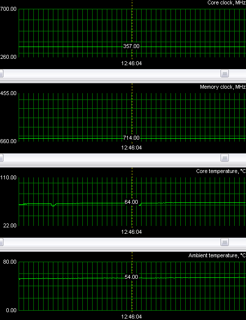 Разгон: видеокарта смогла работать стабильно при разгоне до 440(!) МГц по ядру. По памяти предел получился в 810 МГц.