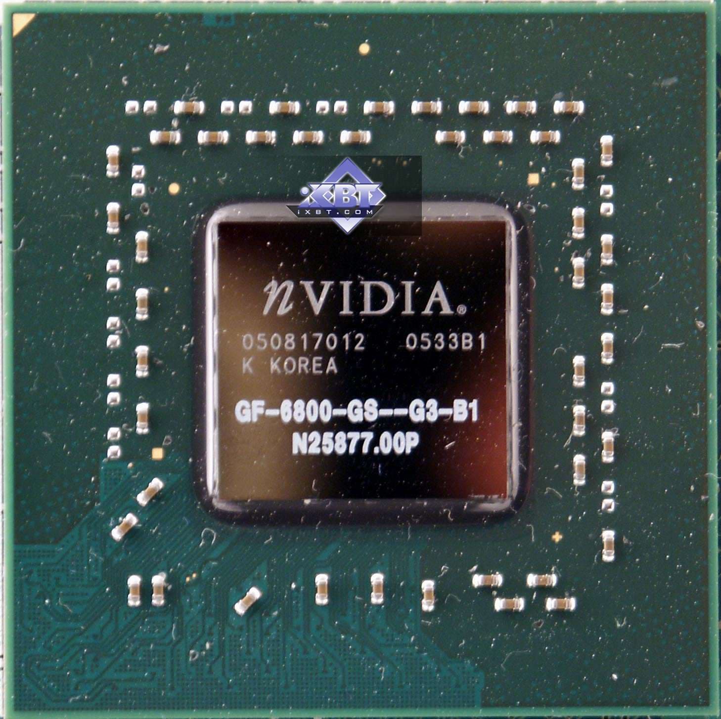 То же самое относится и к GeForce 6800 GS. Интересно отметить, что, судя по маркировке, процессор выпущен на 33-й неделе 2005 года, то есть в сентябре (совсем недавно). И маркировка уже стоит GS. А не просто GeForce 6800. Мы помним, что ранее наименования наклеивались на подложку, но здесь явно маркировка нанесена только на кристалл. Скорее всего, это не ранее выпущенный NV42 для 6800 и просто отобранный и перемаркированный, а заново выпущенный специально для GS.