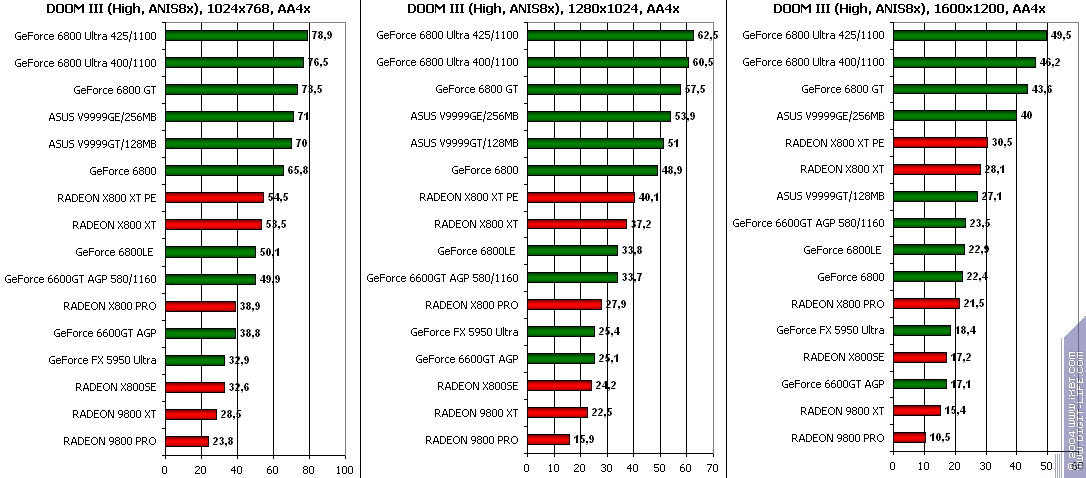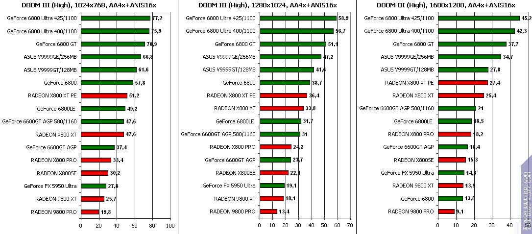 - Краткий отчет об оперативном тестировании современных 3D-карт в DOOM III (X800PRO/XT, GF6800/GT/Ultra, 9800XT/5950U)