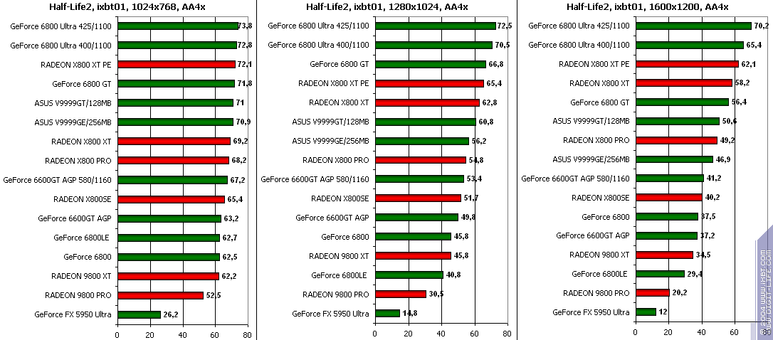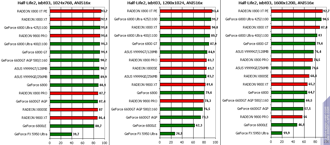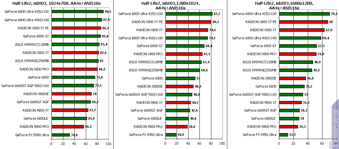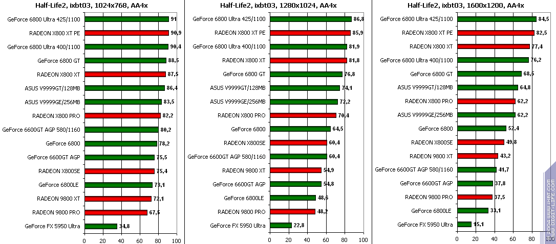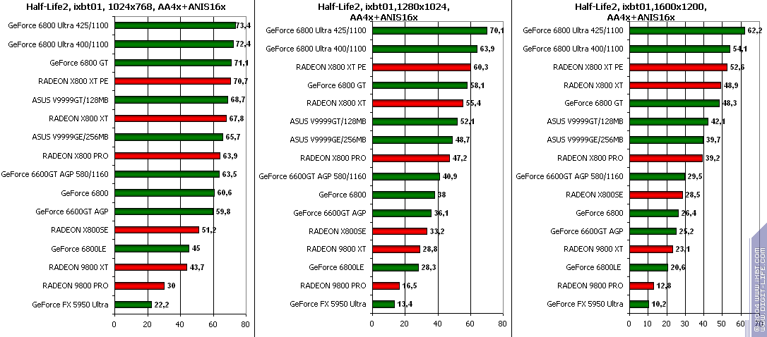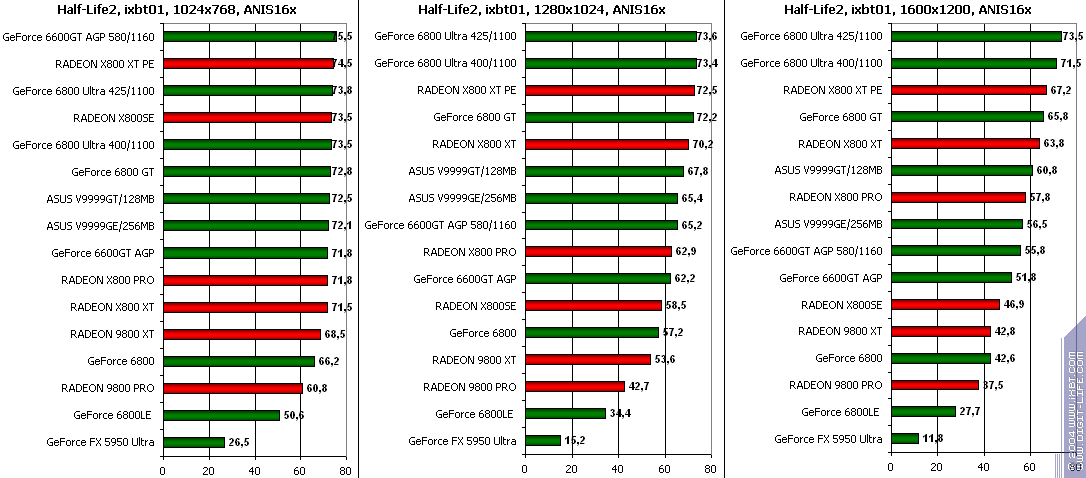 - Half-Life2 (Valve/Sierra) DirectX 9.0, demo (ixbt01, ixbt02, ixbt03 Тестирование проводилось при максимальном качестве.