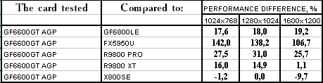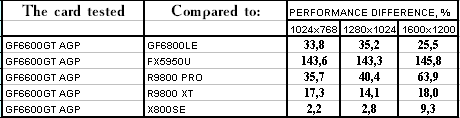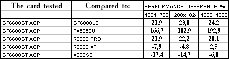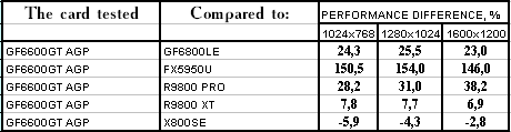 - GeForce 6600GT AGP — против RADEON 9800 PRO ($220) победа