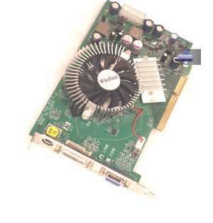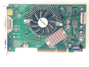 | Карта имеет интерфейс AGP 8x/4x, 128 МБ памяти GDDR3 SDRAM, размещенной в 4-х микросхемах на лицевой стороне PCB. Микросхемы памяти Samsung. Время выборки у микросхем памяти 2.0 ns, что соответствует частоте работы 500 (1000) МГц, память же работает на частоте 450 (900) МГц (в том и отличие от PCI-E аналога, у которого подобная память работает на частоте 500 (1000) МГц). Частота работы GPU 500 MHz. Шина обмена с памятью — 128 bit. 8 пиксельных конвейеров и 3 вершинных. | ![]() |