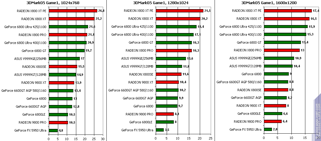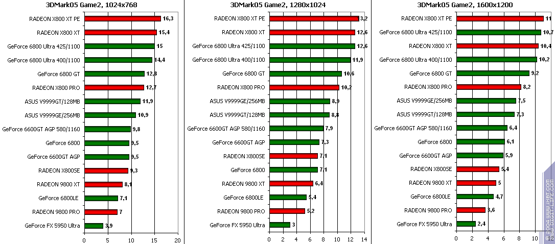 - GeForce 6600GT AGP — против RADEON 9800 XT ($350) небольшая, но победа