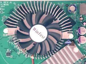 Очевидно, что у продукта Leadtek дизайн полностью совпадает с эталонным, а сам он весьма интересен. Дабы не делать карту очень высокой, чтобы иметь возможность устанавливать в нижней части HSI, разработчики решили сместить мост вправо. И развернулся на 45 градусов блок процессор+4 микросхемы памяти. И таким образом получилась очень компактная PCB. Надо отметить, что в отличие от PCI-E аналога, тут внешнее питание обязательно, поскольку потребление тока у карты намного больше того, что может пройти по AGP-шине.