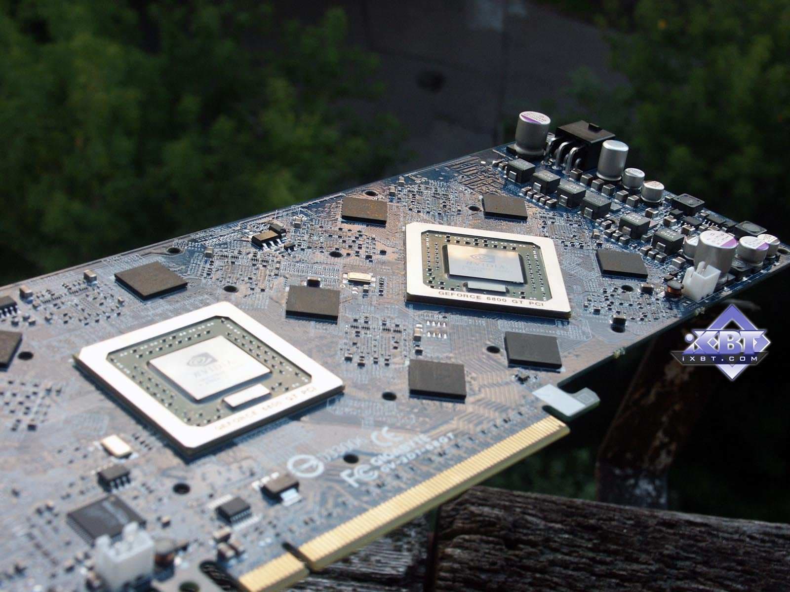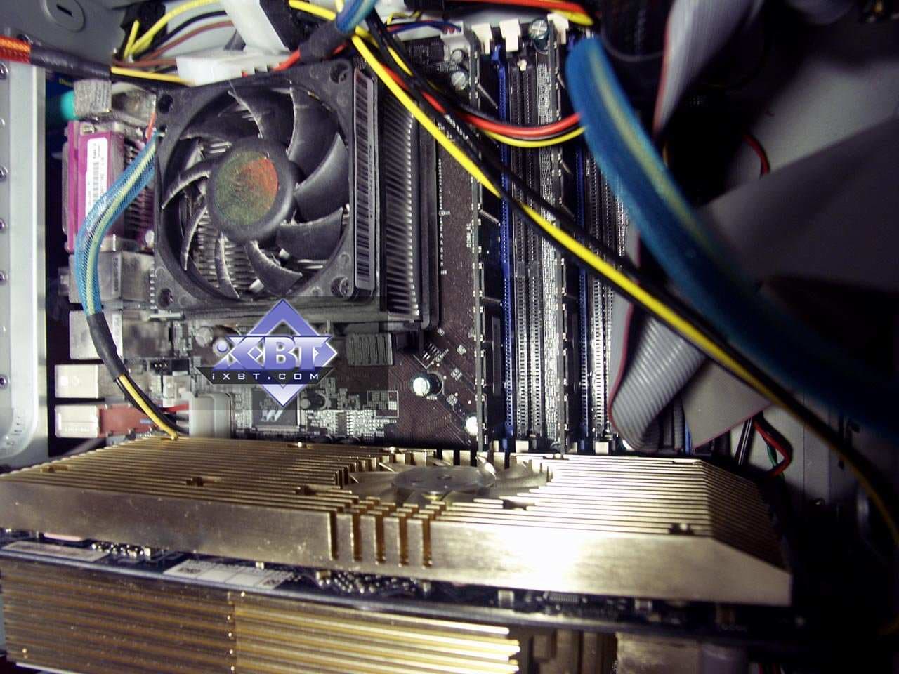 Впрочем, для того, чтобы реально сравнить и сделать выводы, надо новинку изучить. Чем мы и займемся. Напомню лишь, что объектом изучения станет видеокарта (трехмерный ускоритель), несущая на борту два GPU GeForce 6800GT и в общей сложности 512 мегабайт ОЗУ. Все это вместе работает по технологии NVIDIA SLI, то есть по сути два ускорителя на одной PCB.