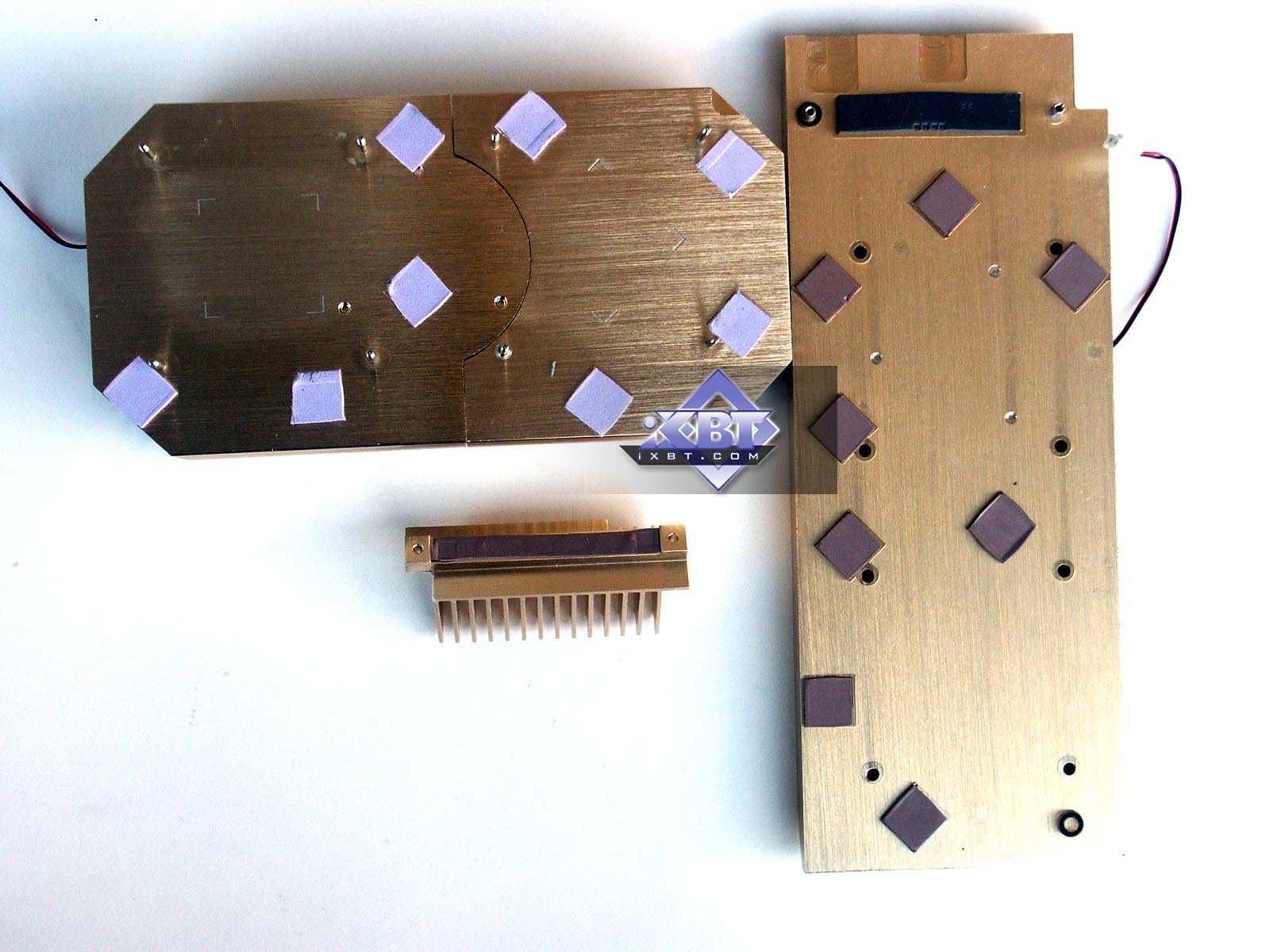Уже с первого взгляда становится ясно — насколько она массивна. Состоит из двух радиаторов, размещенных по обеим сторонам PCB. По-моему, это самый тяжелый и огромный кулер, из всех, что я видел раньше. Если посмотреть на плату с таким устройством под определенным углом, то создается впечатление, что на нее установили вафельный торт, политый шоколадом (с узором в виде логотипа продукта).