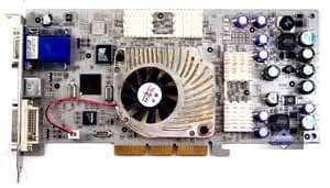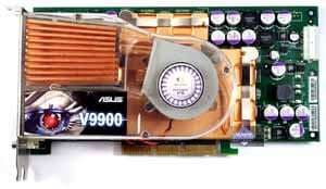 | ASUS V9950 Ultra 256MB 256bit, 450/425 (850) MHz (4 пиксельных конвейера с 2-мя текстурными блоками на каждом, до 16 текстур за проход, до 8-ми отсчетов Z, поддержка DirectX 9.0, шейдерная модель версии 2.0+, блок аппаратной обработки геометрии и освещения базируется на трех вершинных конвейерах) |  |
