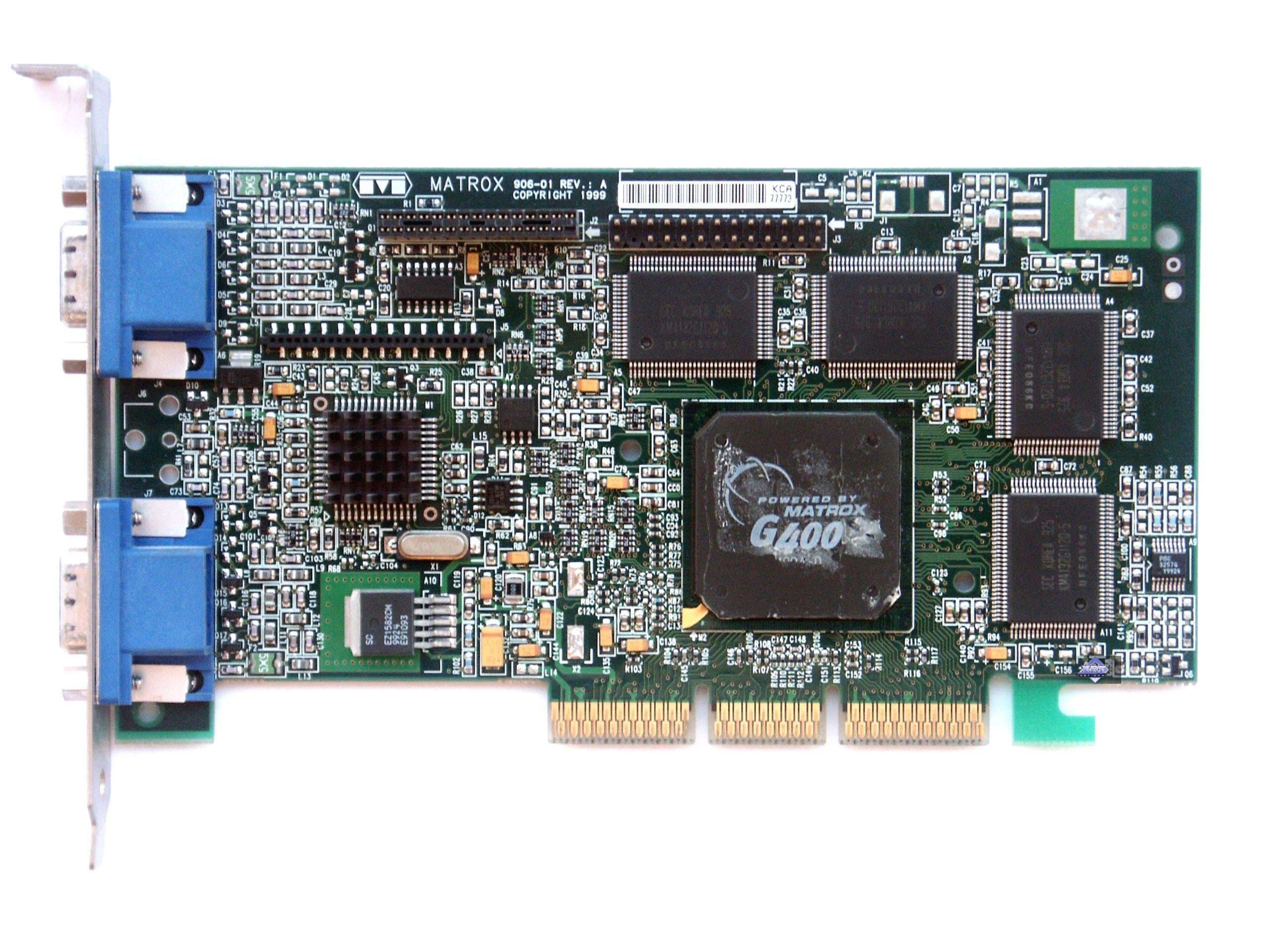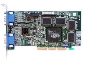 | Matrox Millennium G400 32MB SDR 128bit, 126/150 MHz (2 пиксельных конвейера по 1-му текстурному блоку на каждом, при мультитекстурировании — 1 конвейер с 2-мя текстурниками, возможностей аппаратной обработки геометрии и освещения нет, поддержка EMBM) |  |