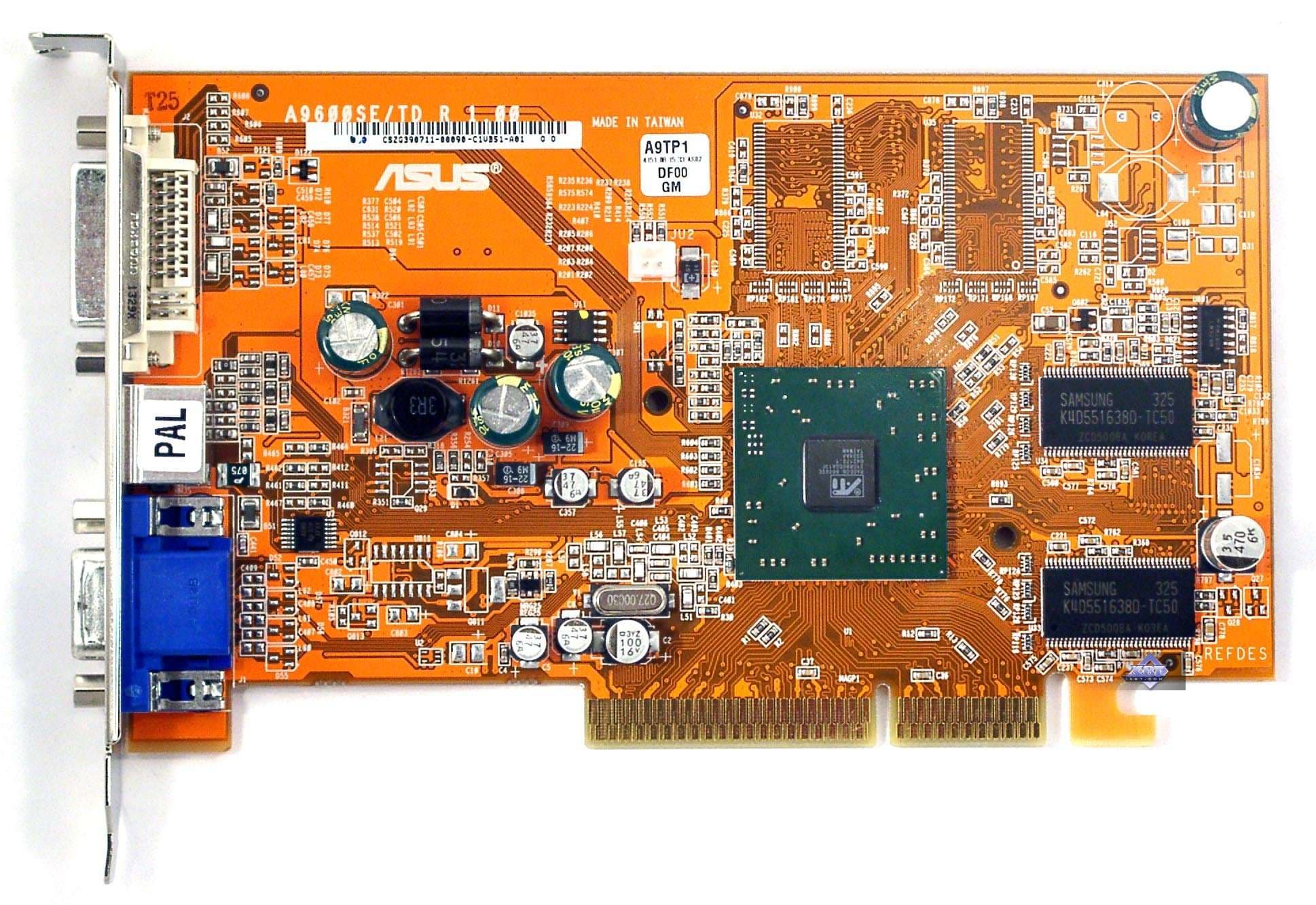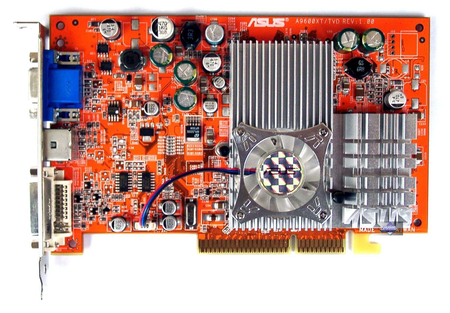 | ASUS A9600XT 128MB DDR 128bit, 500/300 (600) MHz (4 пиксельных конвейера с 1-им текстурным блоком на каждом (до 16 текстур за проход, поддержка DirectX 9.0, шейдерная модель версии 2.0, блок аппаратной обработки геометрии и освещения базируется на двух вершинных конвейерах) |  |