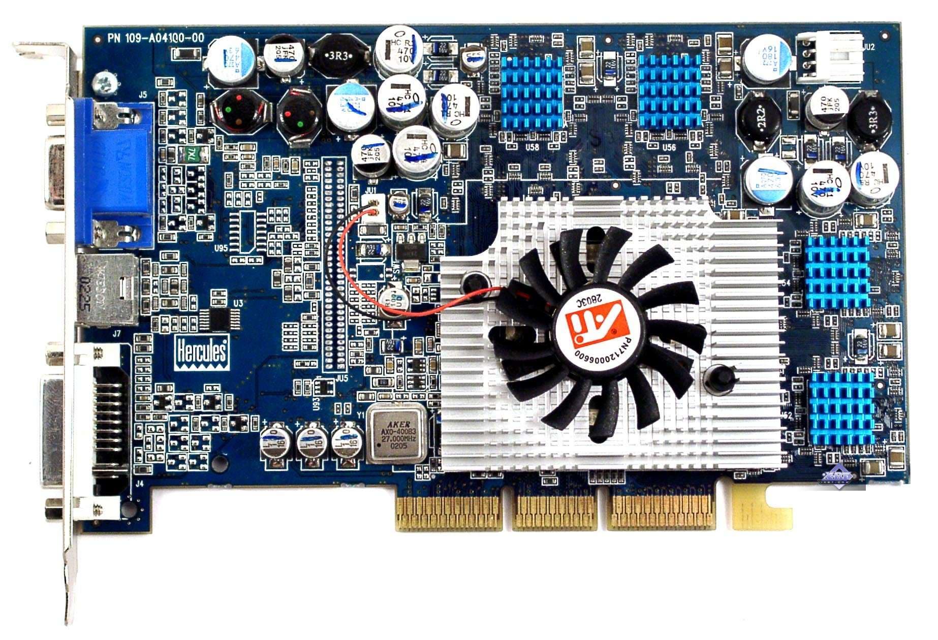| Hercules Dynamite TNT2 Ultra 32MB SDR 128bit, downclocked down to 125/166 MHz (2 пиксельных конвейера по 1-му текстурному блоку на каждом, при мультитекстурировании — 1 конвейер с 2-мя текстурниками, возможностей аппаратной обработки геометрии и освещения нет) |  |