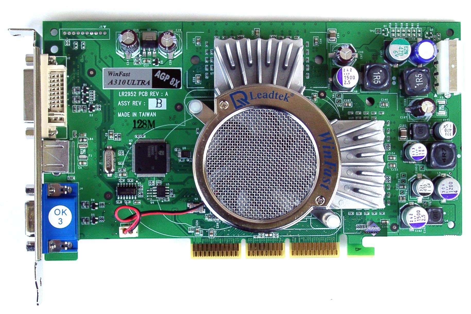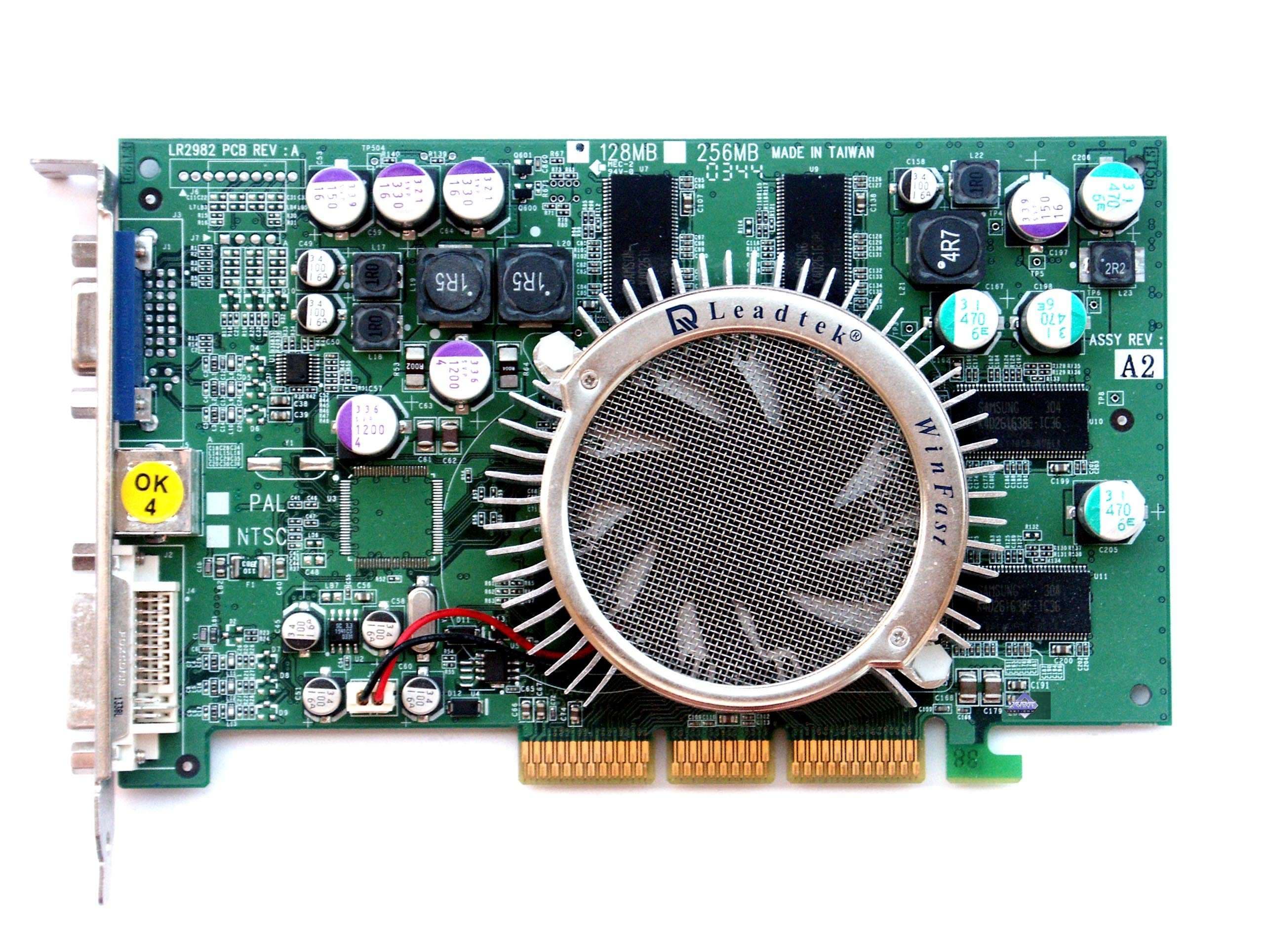 | Leadtek WinFast A360/TD 128MB 128bit, 425/275 (550) MHz (4 пиксельных конвейера с 1-им текстурным блоком на каждом, до 16 текстур за проход, поддержка DirectX 9.0, шейдерная модель версии 2.0+, блок аппаратной обработки геометрии и освещения базируется на трех вершинных конвейерах) |  |