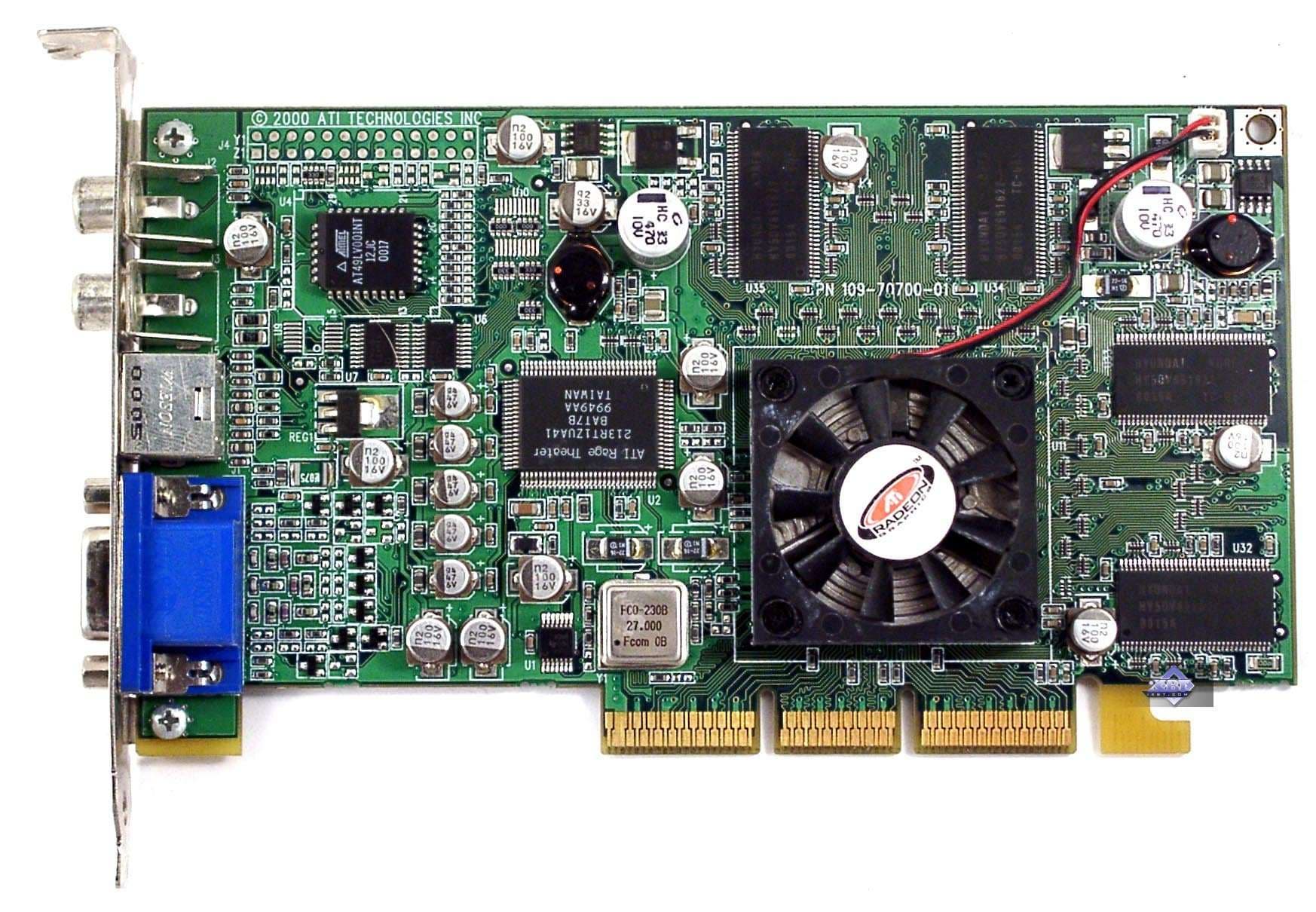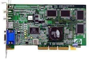 | ATI RAGE 128 PRO 32MB SDR 128bit, 118/143 MHz (2 пиксельных конвейера по 1-му текстурному блоку на каждом, при мультитекстурировании — 1 конвейер с 2-мя текстурниками, возможностей аппаратной обработки геометрии и освещения нет) |  |