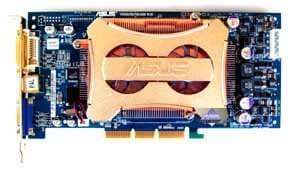 | ASUS AX800XT 256MB GDDR3 256bit, 520/560 (1120) MHz (16 пиксельных конвейеров с 1-им текстурным блоком на каждом, до 16 текстур за проход, поддержка DirectX 9.0c, шейдерная модель версии 2.0b, блок аппаратной обработки геометрии и освещения базируется на шести вершинных конвейерах) |  |