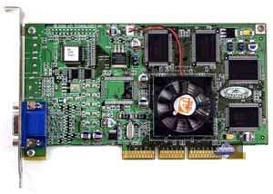 | ATI RADEON 32MB SDR 128bit, 166/166 MHz (2 пиксельных конвейера с 3-мя текстурными блоками на каждом, имеется блок аппаратной обработки геометрии и освещения) |  |