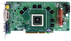 | Palit GeForce 6800 128MB 256bit, 325/350 (700) MHz, number of pipes was downclocked down to 8/4 (8 пиксельных конвейеров с 1-им текстурным блоком на каждом, до 16 текстур за проход, до 16 отсчетов Z, поддержка DirectX 9.0c, шейдерная модель версии 3.0, блок аппаратной обработки геометрии и освещения базируется на четырех вершинных конвейерах) |  |