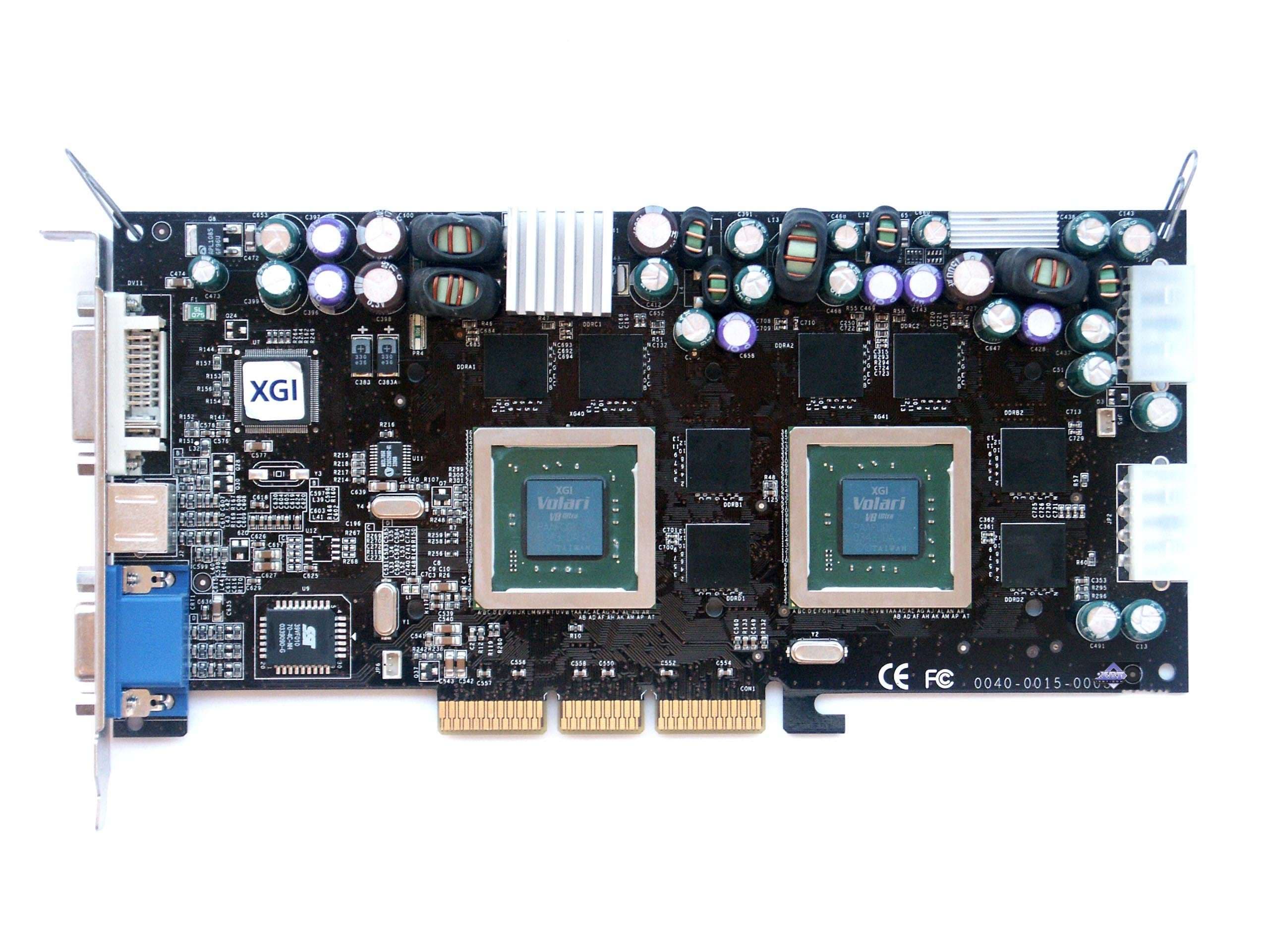 | Club3D Volari V8 Ultra DUO 256MB 2 × 128bit, 2 × 330/350 (700) MHz (2 процессора, каждый их которых несет 8 пиксельных конвейеров с 1-им текстурным блоком на каждом, шейдеры поддерживает только 4 конвейера; поддержка DirectX 9.0, шейдерная модель версии 2.0, блок аппаратной обработки геометрии и освещения базируется на двух вершинных конвейерах) |  |