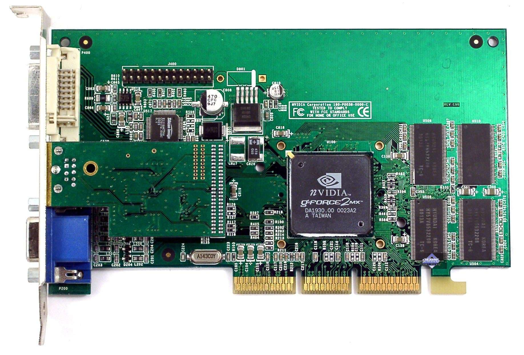 | Reference card NVIDIA GeForce2 MX 32MB SDR 128bit, 175/166 MHz (2 пиксельных конвейера с 2-мя текстурными блоками на каждом, имеется блок аппаратной обработки геометрии и освещения) |  |