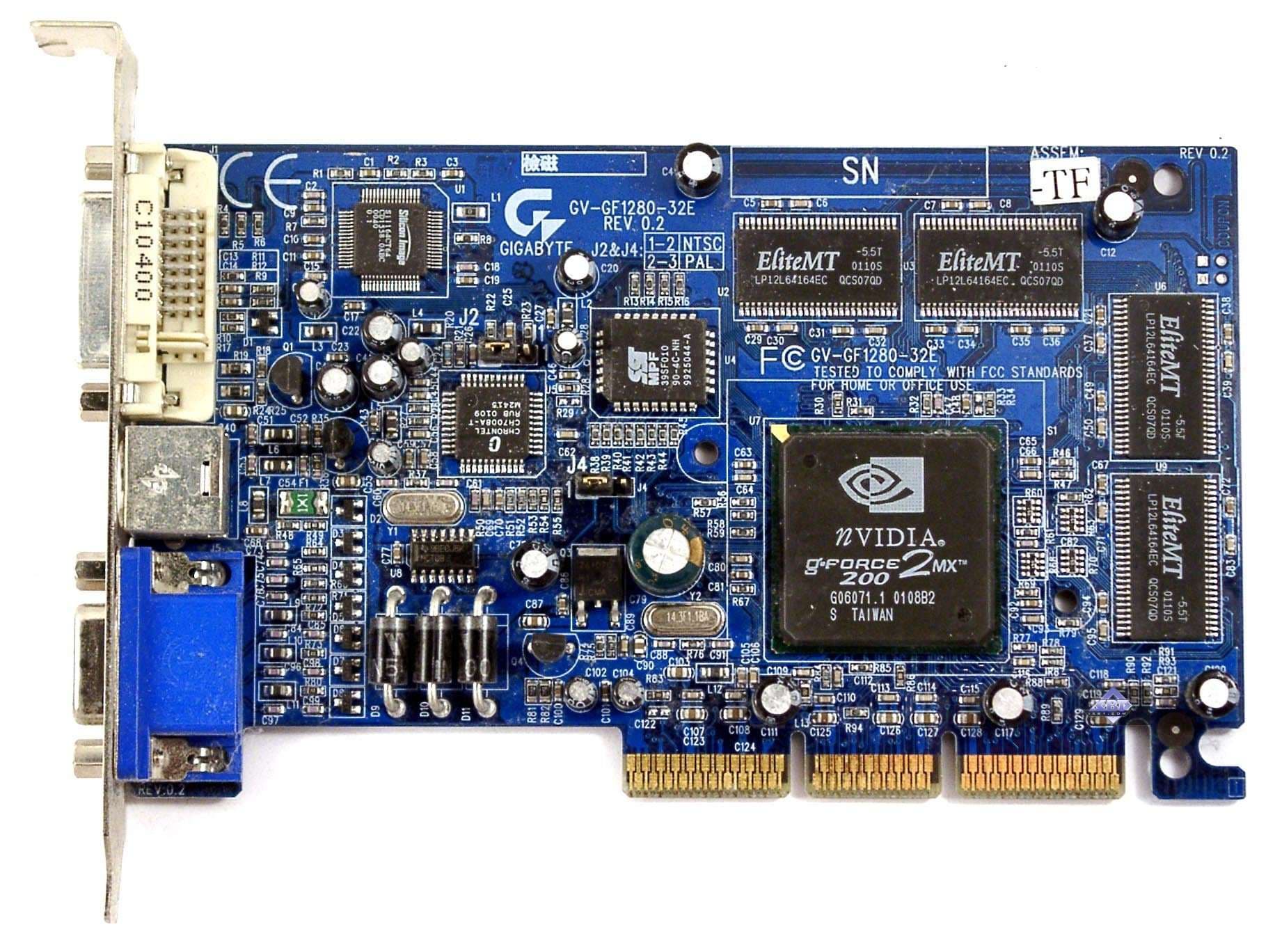| Gigabyte GeForce2 MX200 32MB SDR 64bit, 175/166 MHz (2 пиксельных конвейера с 2-мя текстурными блоками на каждом, имеется блок аппаратной обработки геометрии и освещения) |  |