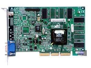 | 3dfx Voodoo4 4500 32MB SDR 128bit, 166/166 MHz (2 пиксельных конвейера по 1-му текстурному блоку на каждом, при мультитекстурировании — 1 конвейер с 2-мя текстурниками, возможностей аппаратной обработки геометрии и освещения нет) |  |