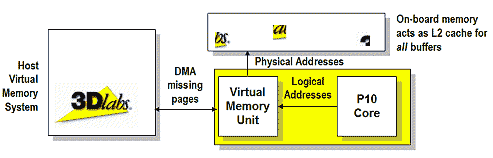 и вновь налицо четкая аналогия с современными CPU, снабженными MMU с поддержкой виртуальной памяти на основе страниц. Здесь роль страниц играют прямоугольные блоки текстур, кешируемые в локальной памяти ускорителя. Подкачка текстур через AGP DIME или PCI DMA осуществляется чипом автоматически, по мере надобности. Таким образом, мы получаем не только эффективное кеширование больших наборов текстур, но и важную для профессиональной графики возможность работать с отдельными текстурами, размер которых может превышать объем локальной памяти ускорителя (!).