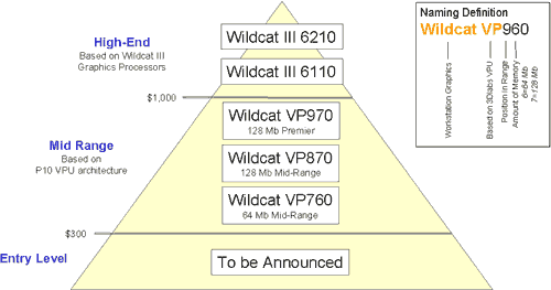 Вся линейка расположена в середине большой пирамиды, символизирующей охват различных секторов профессионального рынка продуктами от 3Dlabs.