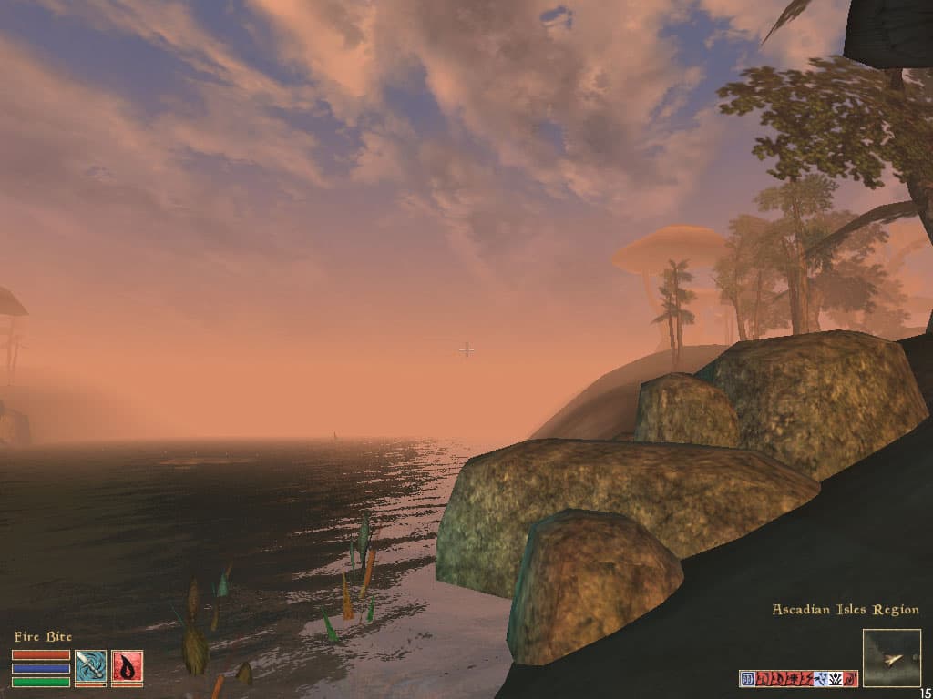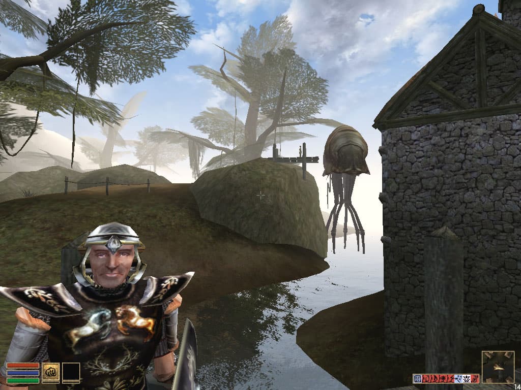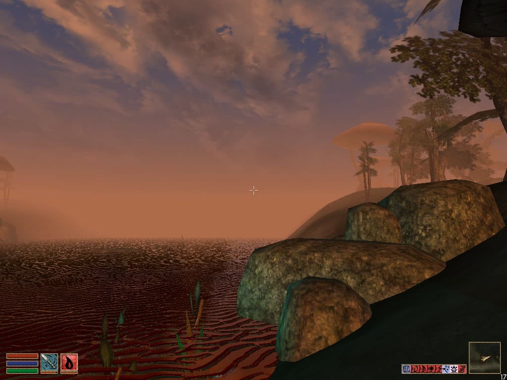 Однако и тут есть нарекания. Слава Богу, что их не так много, но вот пресловутая игра Morrowind, в которой практически впервые водная поверхность реализована через пиксельные шейдеры, выдала следующие картинки на 3Dlabs Wildcat VP870 (для сравнения приведены скриншоты, полученные на RADEON 8500):