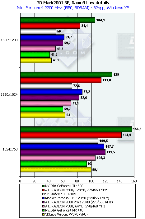 Картина схожая, производительность где-то около той, что выдает GeForce4 MX 440.