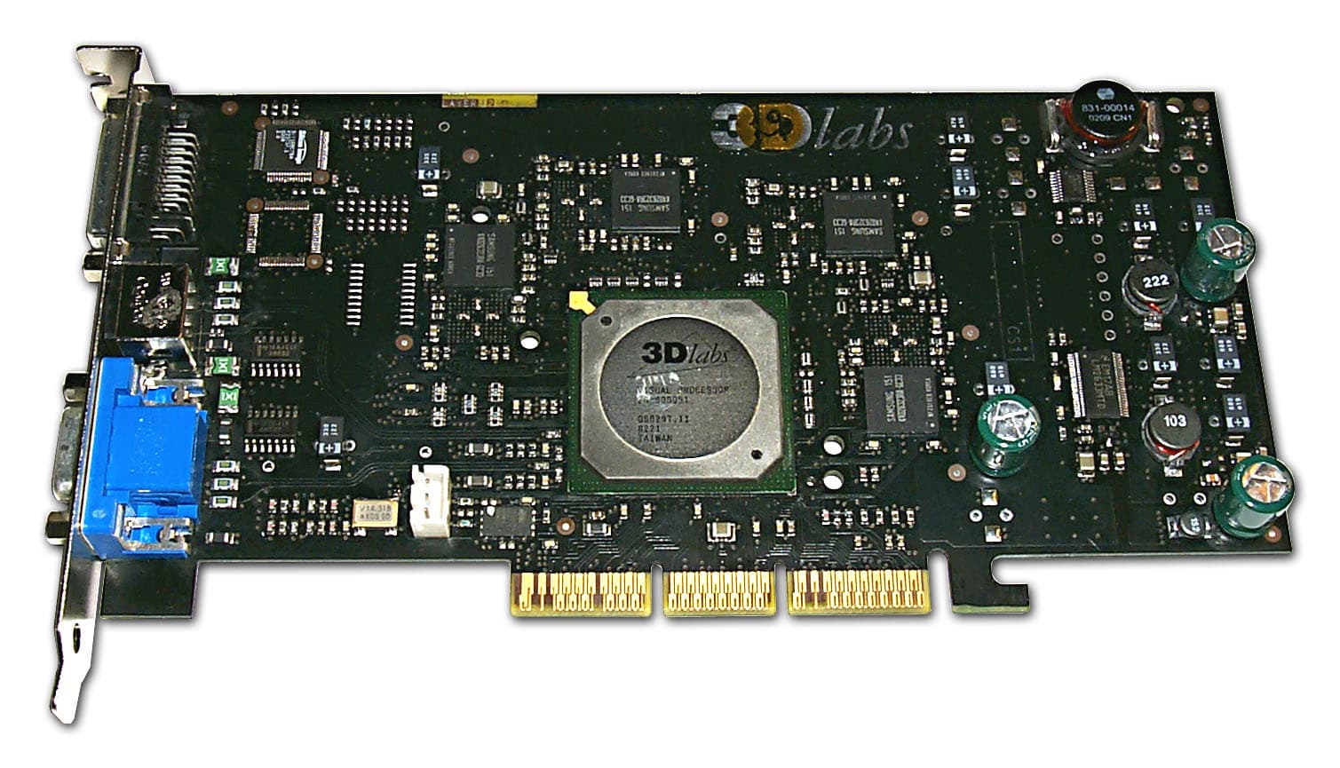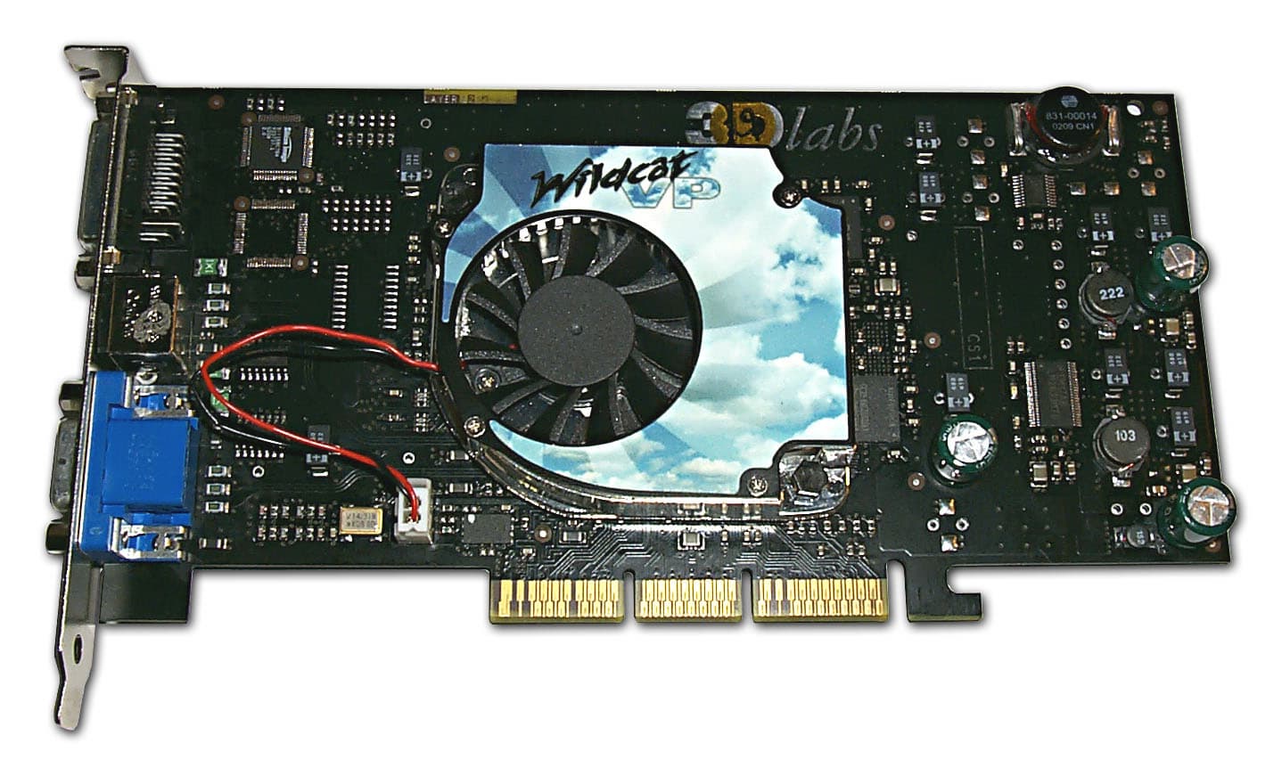 - Wildcat VP970: 128 MB of 256-bit DDR SDRAM; 225M Vertices/Sec; 42G AA Samples/Sec; Решение предназначено для тяжелых процессов отрисовки в CAD/DCC приложениях всех видов.