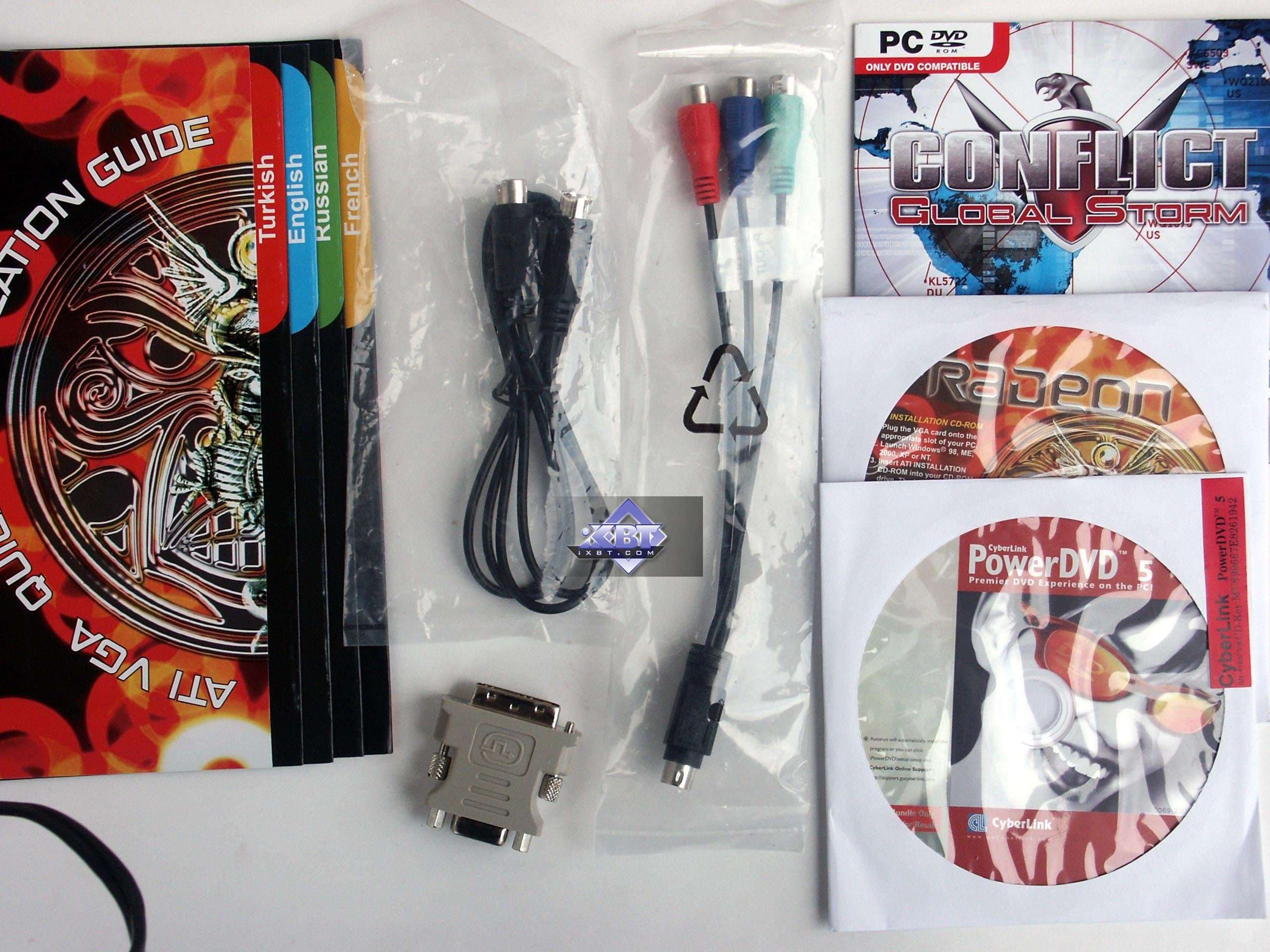 У карт имеются гнезда TV-выхода, которые уникальны по разъему, и для вывода изображения на ТВ как через S-Video, так и по RCA, требуются специальные адаптеры-переходники, поставляемые вместе с картами. Более подробно по ТВ-выходу на картах с процессорами от NVIDIA можно прочитать — здесь, а что касается X1600 PRO, то прочитать об особенностях реализации ТВ-выхода можно здесь, здесь и здесь.