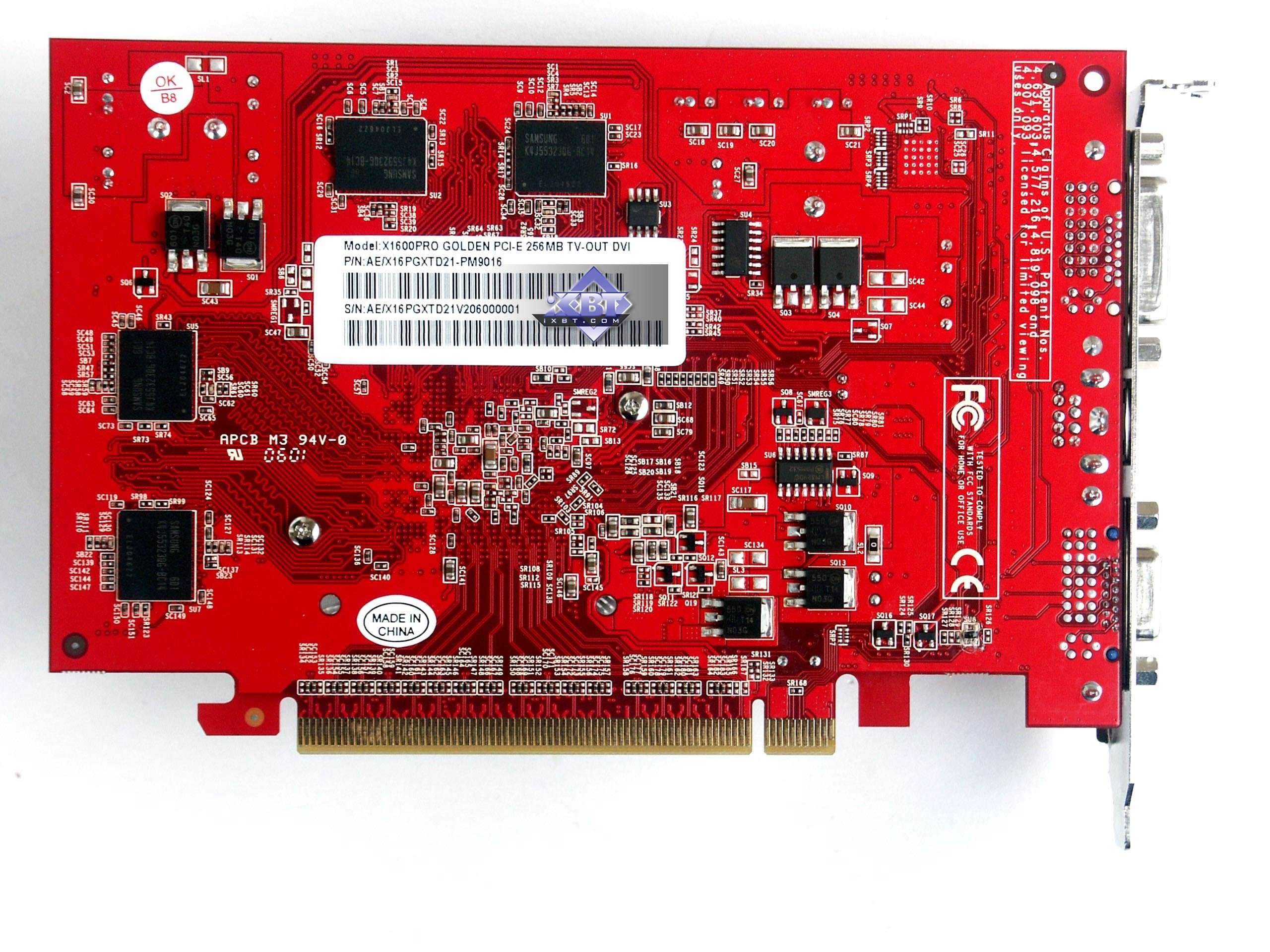 И лишь карта на базе X1600 PRO представляет собой уникальную карту. Дизайн переработан. отличается от эталонного. Почему-то использована память в 256Мбит чипах, а не 512Мбит, что уменьшило бы число микросхем. Ну тут уж решать разработчикам, что им дешевле. Частоты работы карты почти как у X1600 XT, далеко выше, чем у рядового X1600 PRO, что и позволило ввести понятие Golden для этого продукта (придумать что-то более оригинальное уже наверно времени не было, Golden — уже очень сильно «изношенное» слово).