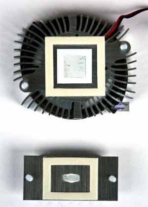 Очевидно, что дизайн всех PCX5750 базируется на FX5700 с тем лишь изменением, что касается наличия моста HSI между чипом и PCX (карта стала чуть выше, GPU поднят также выше вместе с микросхемами памяти, высвободив нижнюю часть под установку микросхемы моста (на фотографии справа).