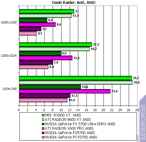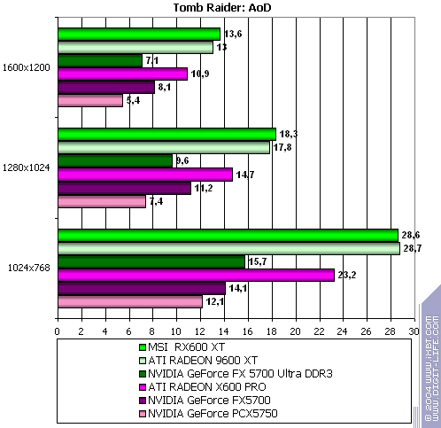 - Tomb Raider: Angel of Darkness v.49 (Core Design/Eldos Software) — DirectX 9.0, Paris5_4 demo, настройки тестирования приведены здесь.