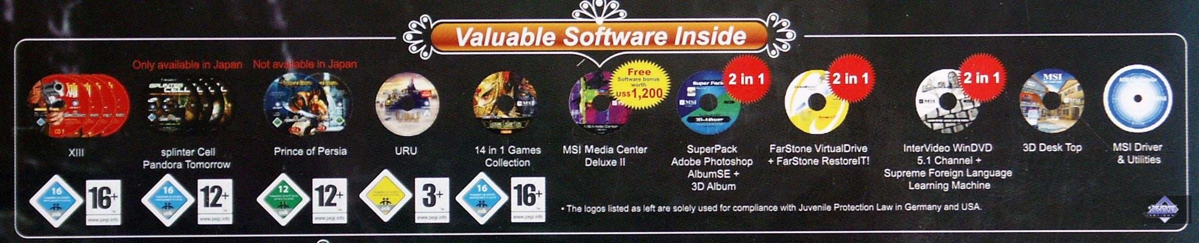 Но! Я еще раз подчеркну о комплектах поставки. Особенно от MSI! Это просто чудо какое-то, с картами среднего уровня поставлять столько современных игр, плюс большое разнообразие иного ПО. Здесь, конечно, MSI вне конкуренции! Однако и Leadtek не подкачал, снабдил карты также современными играми, не взирая на Middle (и даже приближающийся к Low) сектор.