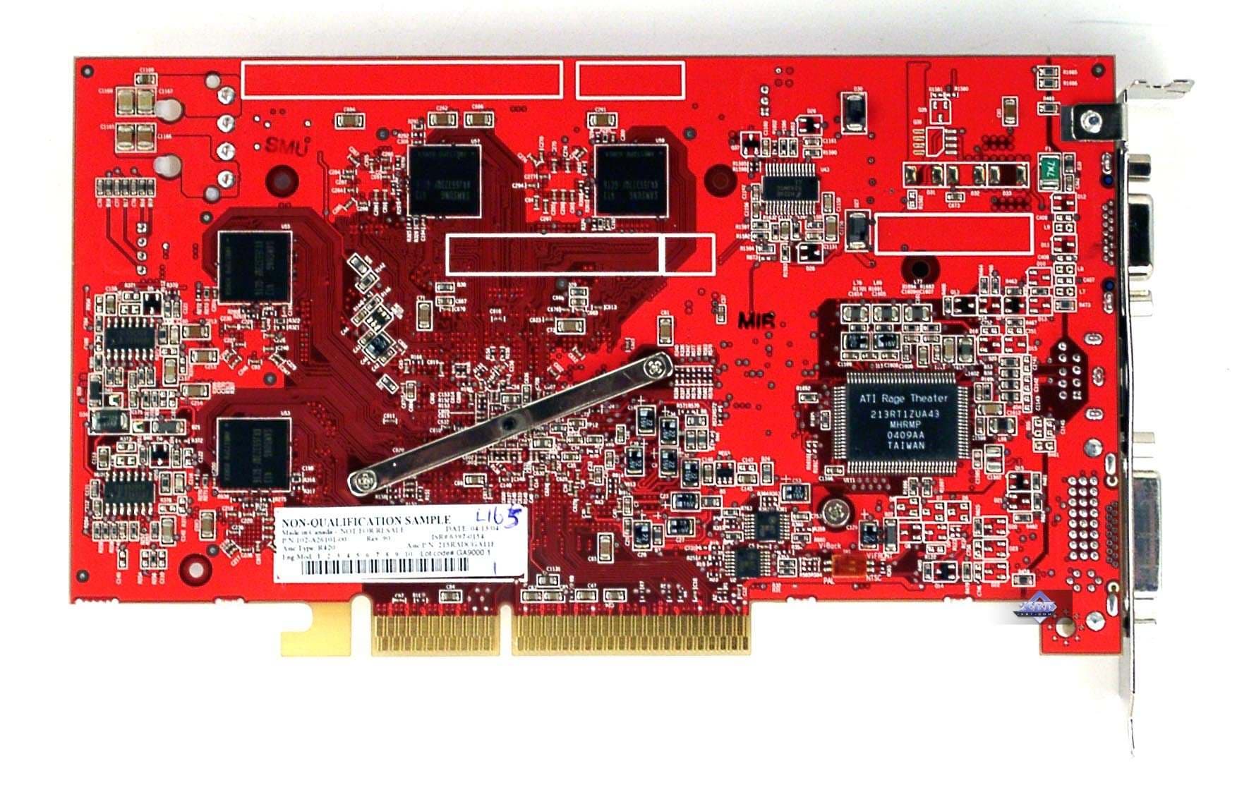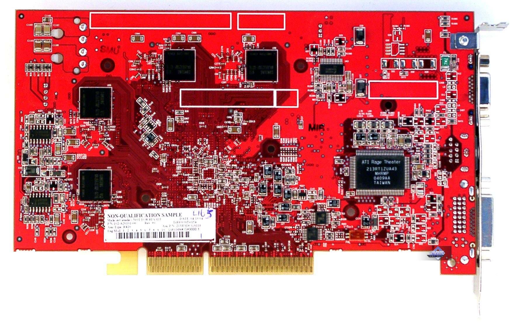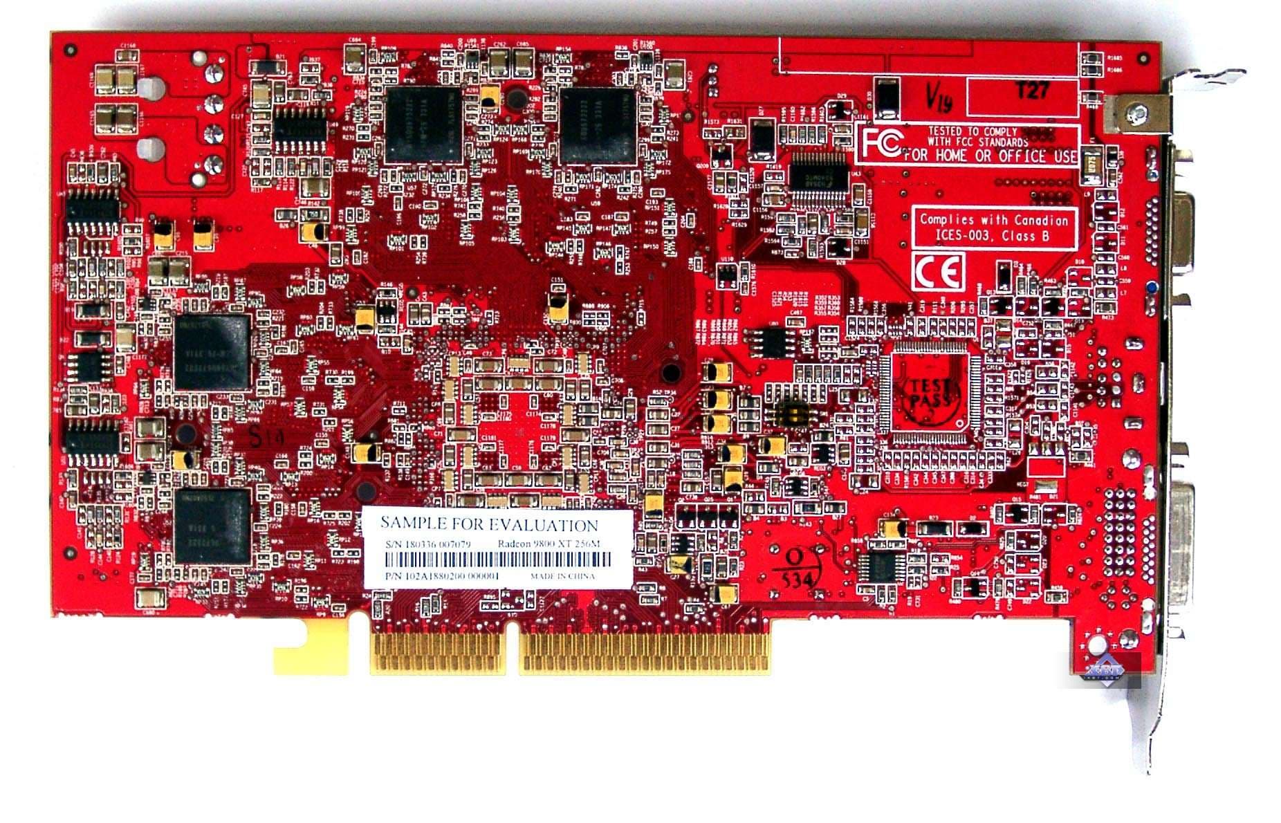 Очевидно, что дизайн R420 очень похож на своего предшественника — R360. Только из-за того, что используется GDDR3 память, несколько изменена разводка. Судя по всему, по контактам R420 полностью совместим с R360. Обратим также внимание на то, что разъем для внешнего питания по-прежнему один, да и карты «кушают» сильно меньше, чем NV40. Отметим, что у нас пока лишь опытные образцы, поэтому мы не знаем, такими же одинаковыми пойдут в серию X800 XT и PRO, или все же финальные карты будут чем-то отличаться.