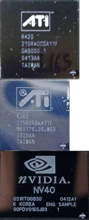 Давайте посмотрим теперь на сам чип. Вначале сравним размеры кристаллов у R360, R420 и NV40: