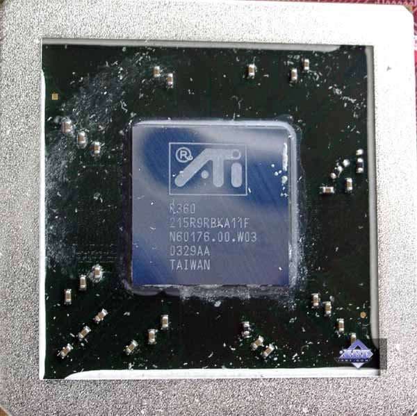 Изготовлены кристаллы примерно в конце марта-начале апреля, то есть совсем «свежие» :-). Заметим, что никаких видимых отличий, как и по маркировке так и по расположению резисторов на подошве между чипами не видно. Поэтому снова напрашивается мысль, что урезание по конвейерам сделано программным путем через драйвера. Мы это будем еще проверять. Но если это окажется верным, то слова ведущего сотрудника ATI, сказанные им в интервью в офисе ATI о том, что больше программных урезок не будет, как-то странно сочетаются с практикой.