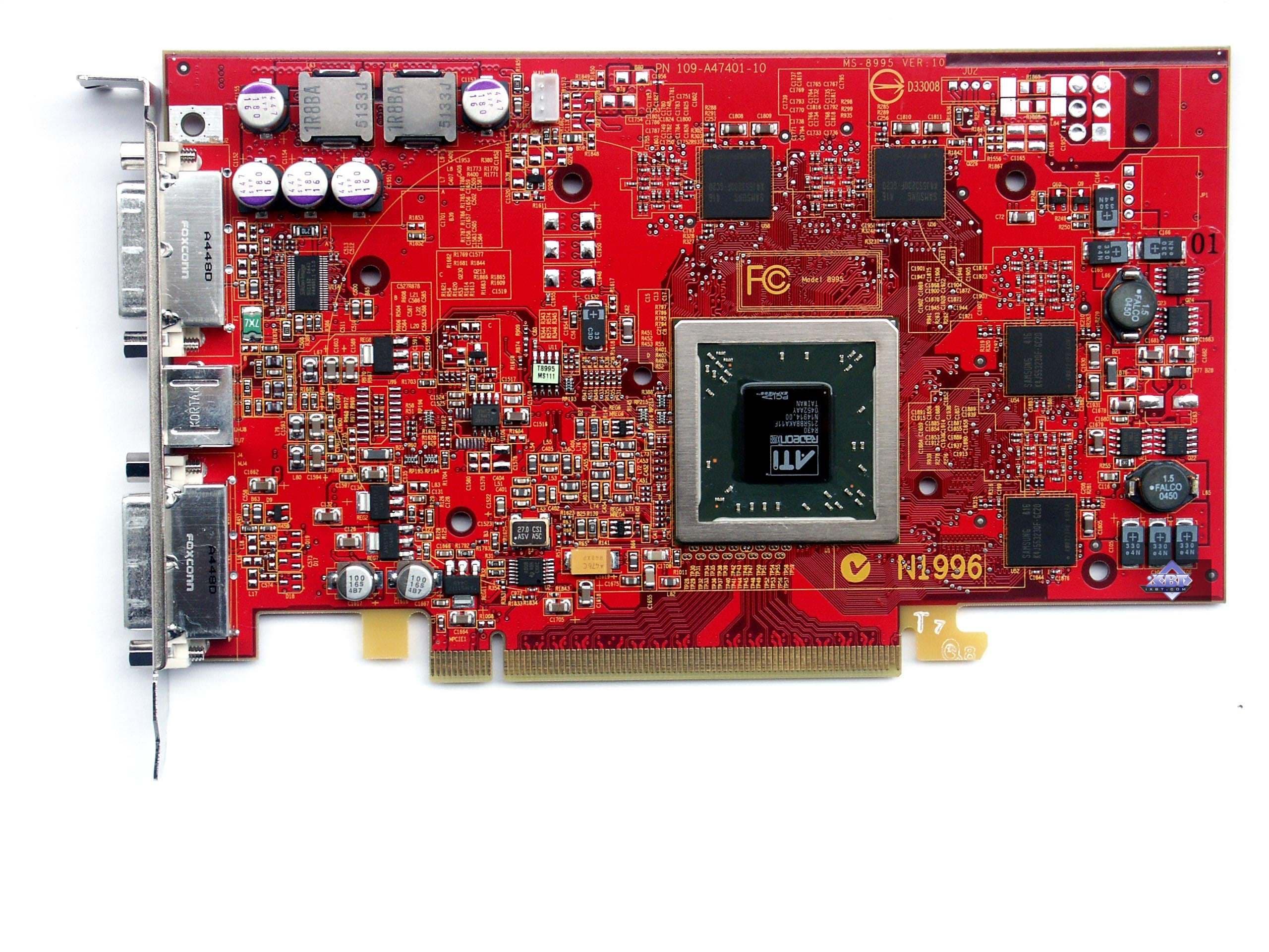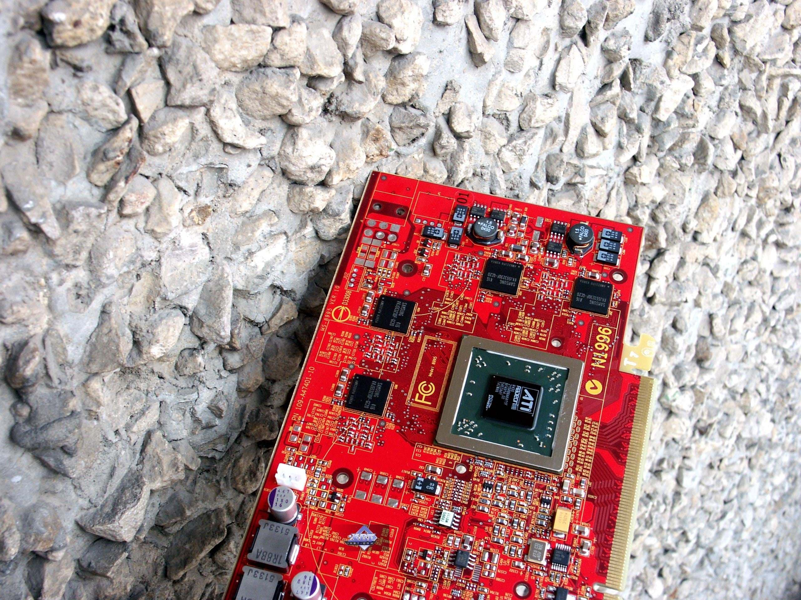 Очевидно, что данная карта изготовлена на мощностях MSI, но при этом полностью копируется эталонный дизайн. Традиционный для MSI красный цвет даже менять не надо, ибо он совпадает с не менее традиционным цветом всех reference-card от ATI. Замечу лишь, что цвет лака у MSI — более насыщенный, ближе к алому, когда как у ATI цвет карт имеет слегка розовато-лиловый оттенок.