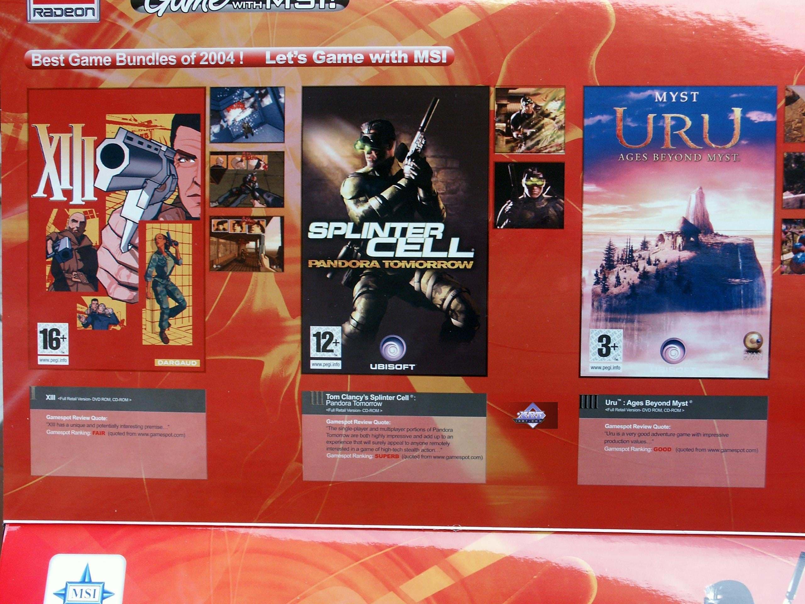 Старый друг российского рынка, компания MSI, которая ныне является и партнером ATI (не только NVIDIA), выпускает в свет, по сути, все, что на сегодня имеет в своем арсенале ATI. В производстве как самые быстрые High-End карты (впрочем, их производит ATI и продает своим партнерам), так и самые дешевые продукты типа X300SE. Старый друг потому так и называется, что имеет большой авторитет, поэтому нет смысла рассказывать о достоинствах MSI. Тайваньская фирма ныне имеет в Москве свое представительство.