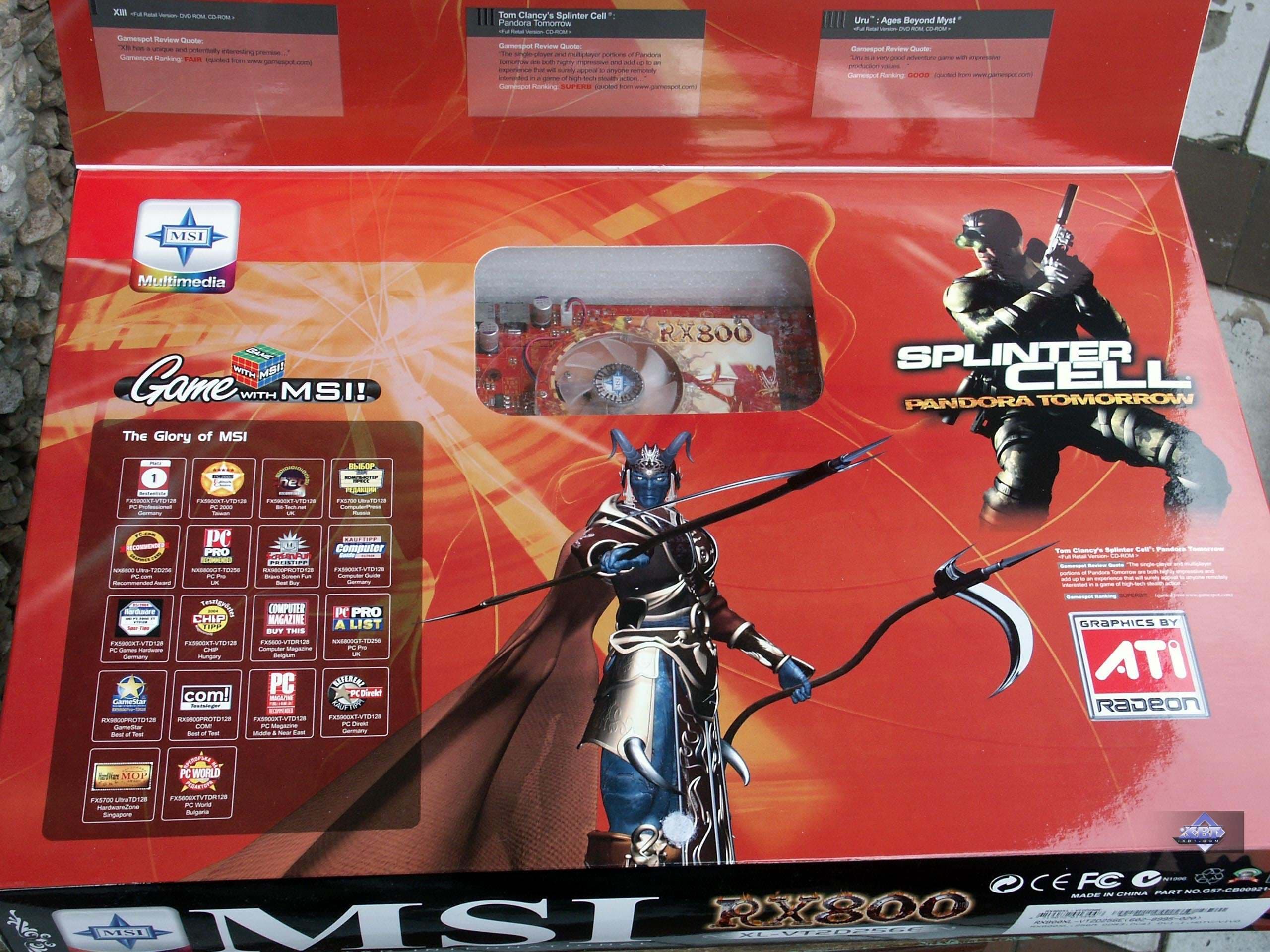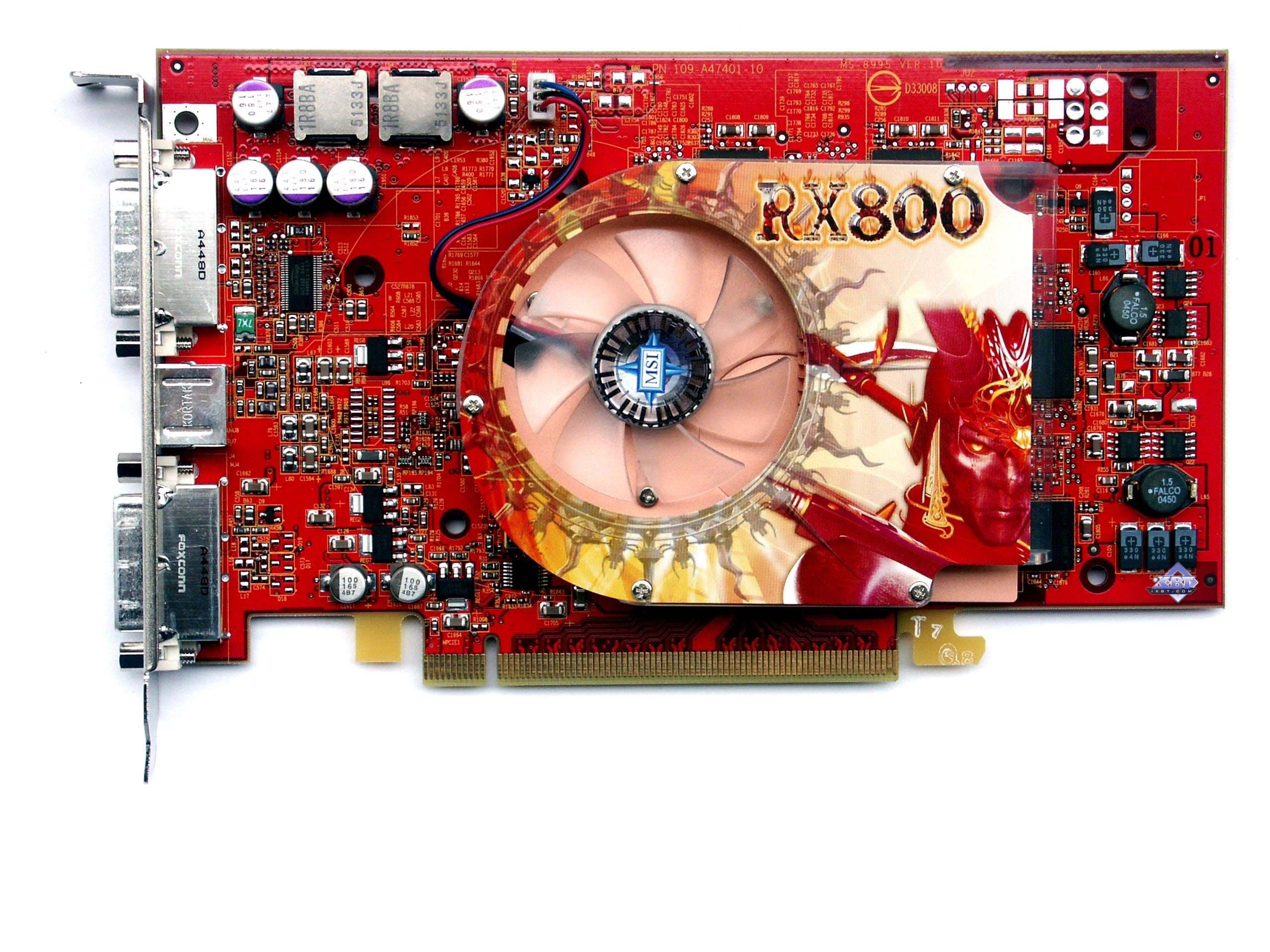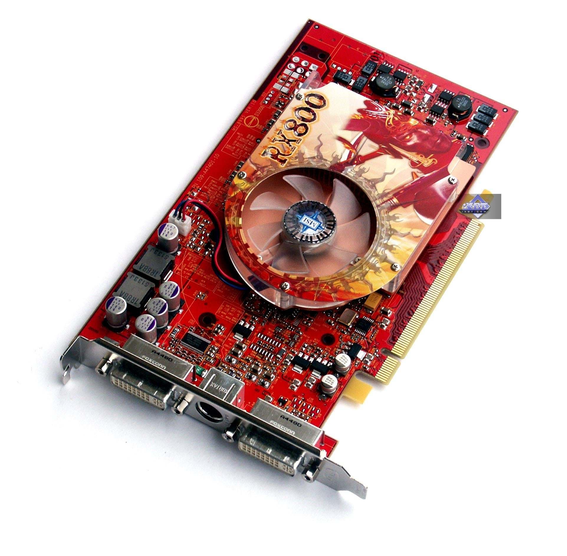 MSI RX800 XL-VT2D256E PCI-E — во-первых, хочется сразу сказать, что качество исполнения данной карты очень высокое, в 2D в 1600х1200 при 85Гц картинка отличная. Далее, система охлаждения очень неплохая, не шумит (сказать о том, как оно будет через месяц-два эксплуатации, я не могу, не было возможности столько времени гонять карту), есть подсветка для любителей моддинга.